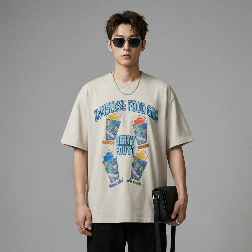 Kreieren Sie einen lässigen und erfrischenden Look mit unserem Oversize-T-Shirt mit Eiscreme-Print. Dieses vielseitige Oberteil wurde für Komfort und Stil entworfen und ist perfekt für sonnige Tage und entspannte Momente! 🍦