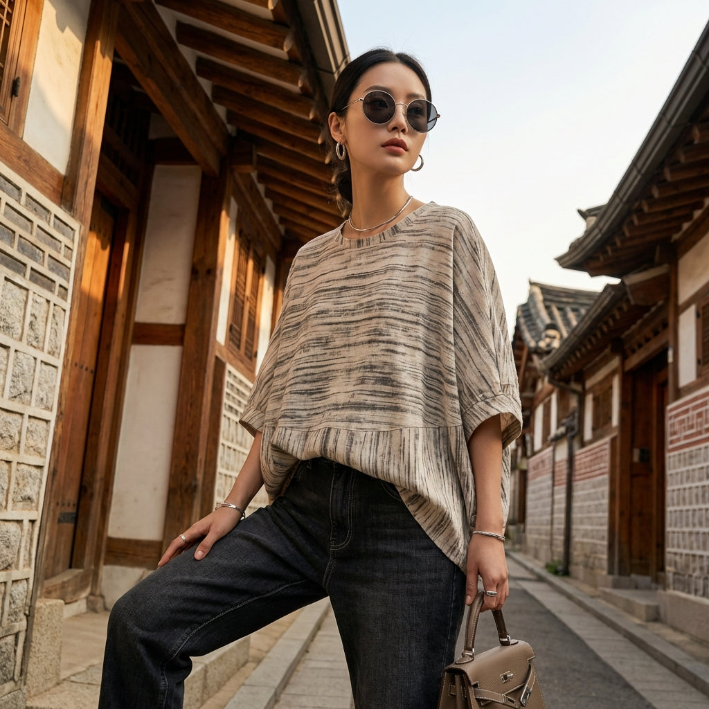 Entscheiden Sie sich für dieses lässige und trendige T-Shirt, ein Schlüsselstück für einen mühelosen und bequemen K-Fashion-Stil.