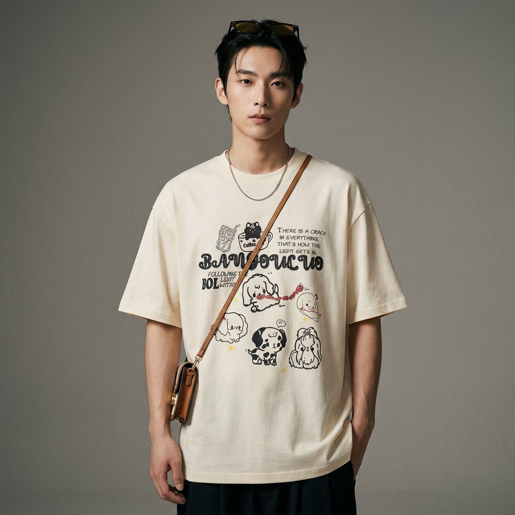 - Stil: Streetwear, Lässig, Hip Hop. Dieses T-Shirt verkörpert die Essenz der koreanischen Urban Fashion, ideal für einen modernen und selbstbewussten Look.
