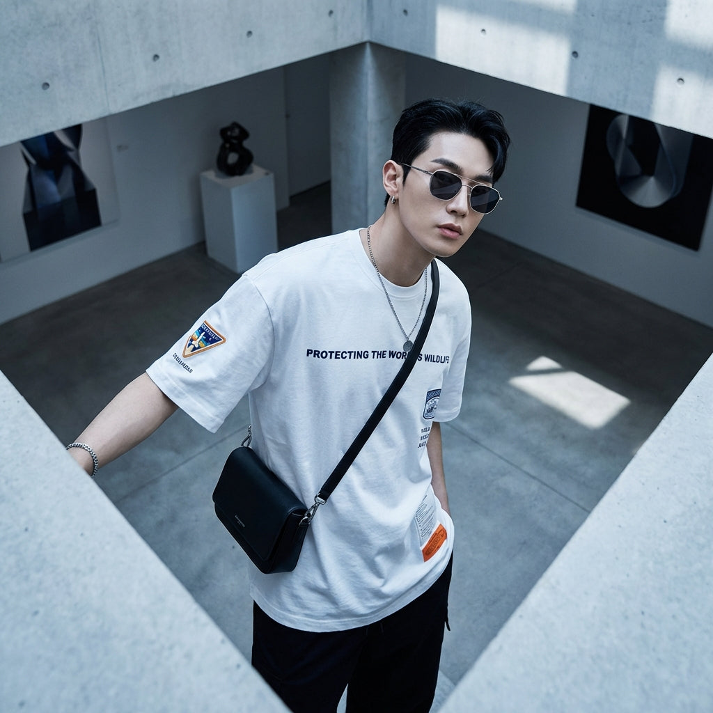 - Stil: Streetwear, Casual, Koreanische Mode. Dieses T-Shirt verkörpert die lässige und coole Ästhetik der urbanen Mode, mit einem Hauch von K-Fashion-Inspiration.