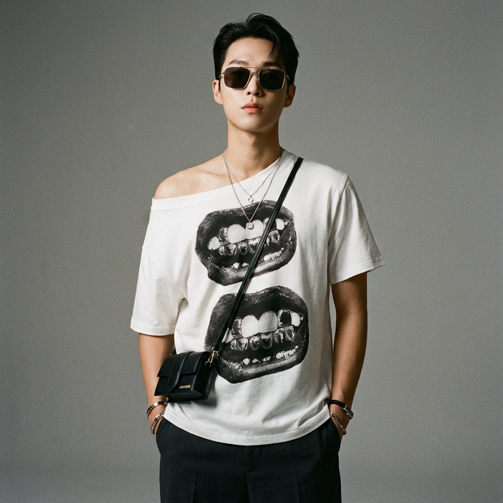 - Stil: Streetwear, Hip-Hop, K-Fashion. Dieses T-Shirt verkörpert den Geist der koreanischen urbanen Mode mit einem Hauch von Originalität.
