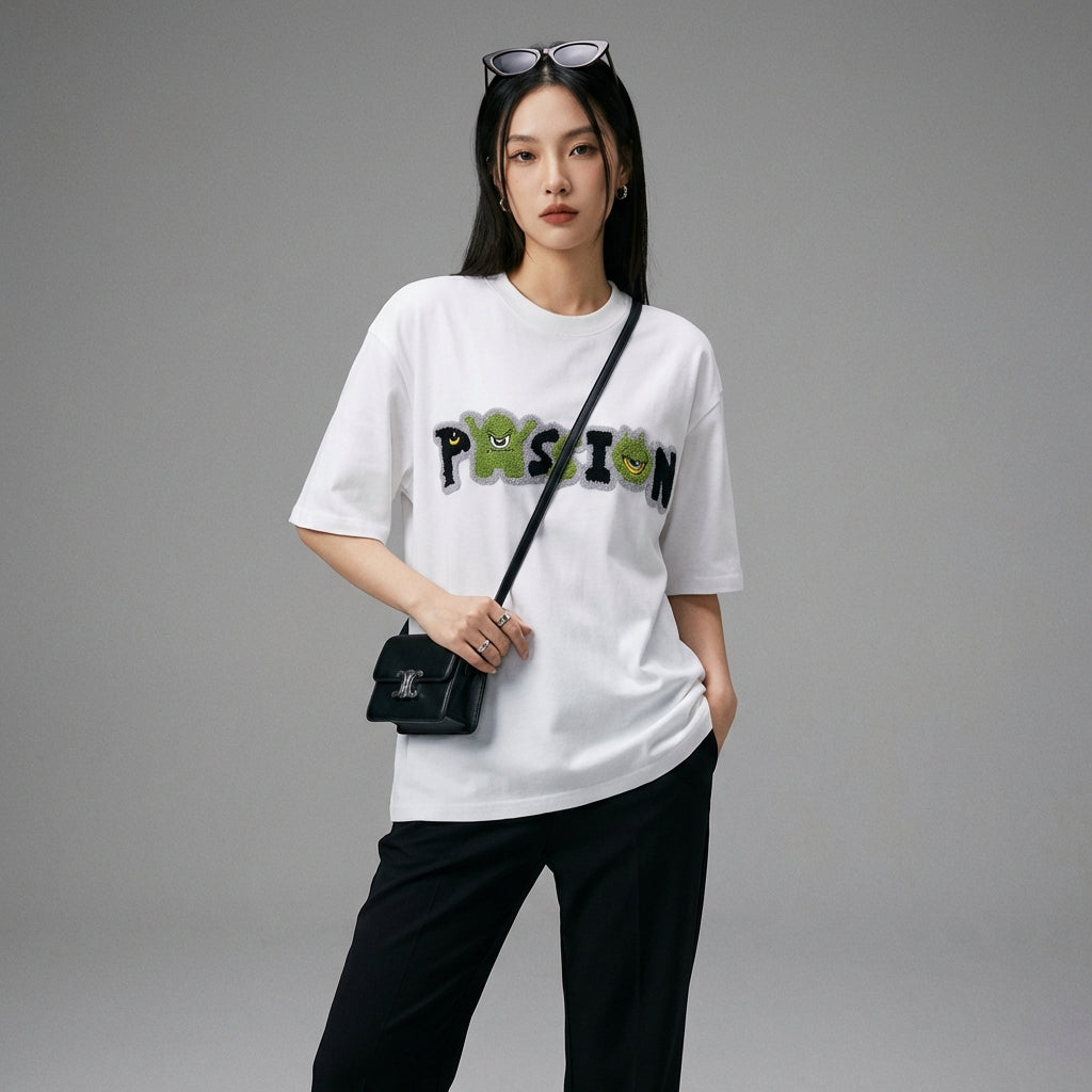 Kreieren Sie einen lässigen und trendigen Look mit unserem Oversize-T-Shirt, das mit einem Samtbuchstaben auf der Vorderseite verziert ist. Dieses Modell mit Rundhalsausschnitt und kurzen Ärmeln ist perfekt für einen urbanen und modernen Stil, ideal für alle Gelegenheiten! ✨
