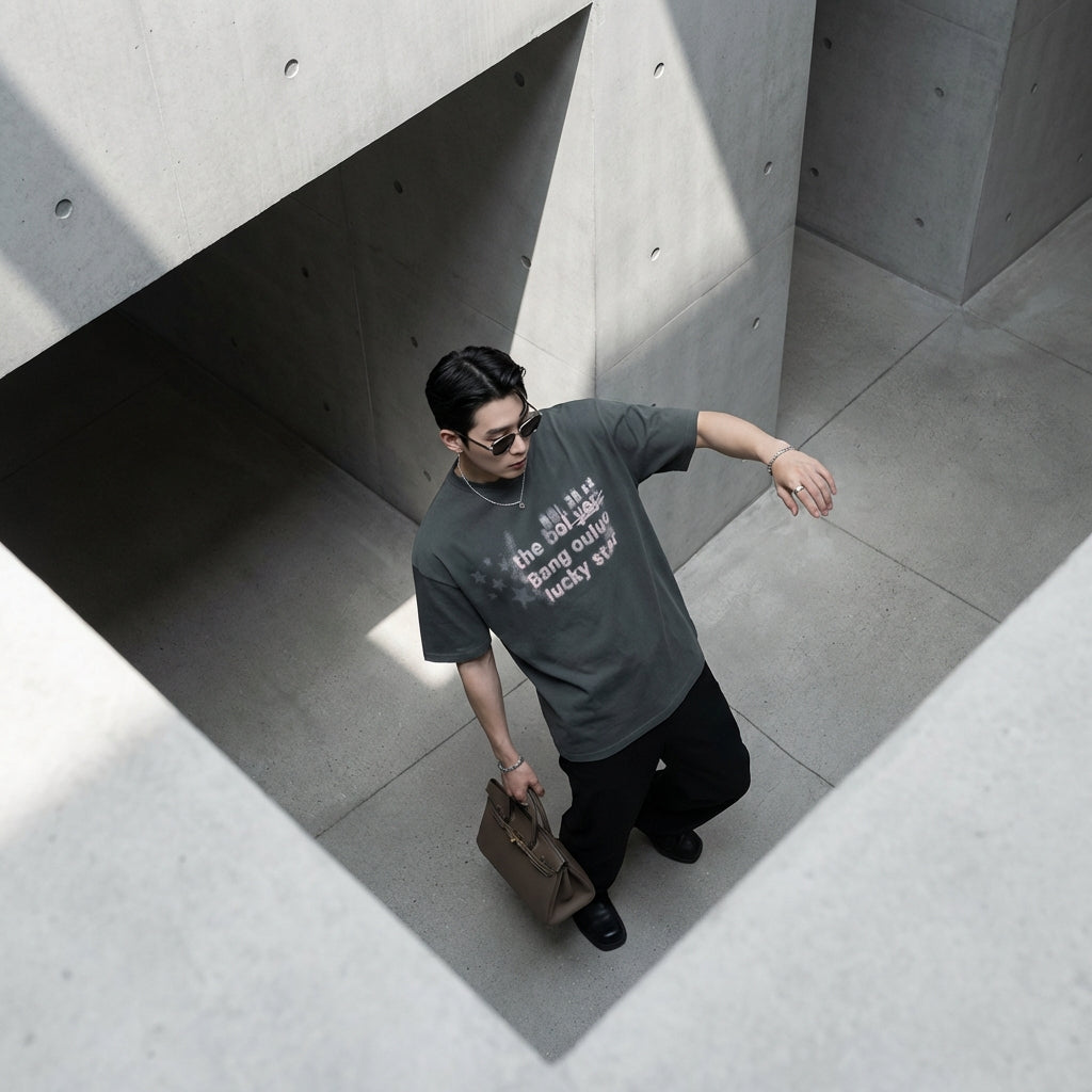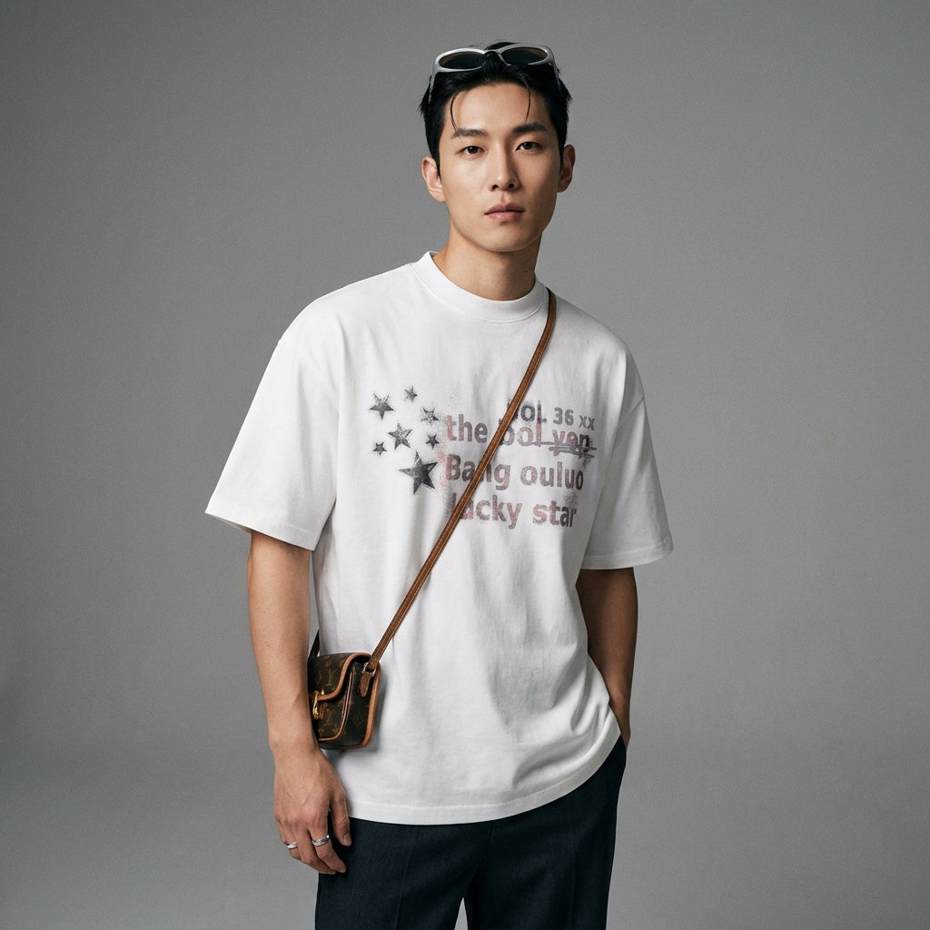 - Stil: Streetwear, K-Fashion, Lässig, Trendig. Dieses T-Shirt verkörpert den Geist der koreanischen Urban Fashion, ideal für einen modernen und selbstbewussten Look.