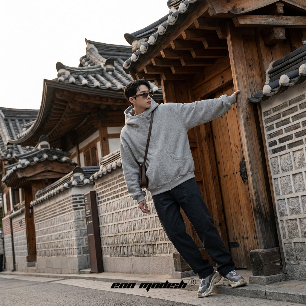 - Stil: Streetwear, Urban, K-Fashion. Dieser Cardigan verkörpert die Essenz der modernen urbanen Mode, perfekt für einen lässigen und stylischen Look.
