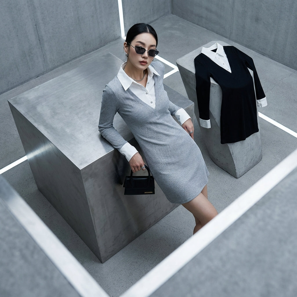 - Stil: Streetwear, K-Fashion, Trend. Dieses Kleid verkörpert den urbanen und modernen Geist, inspiriert von den neuesten koreanischen Trends.