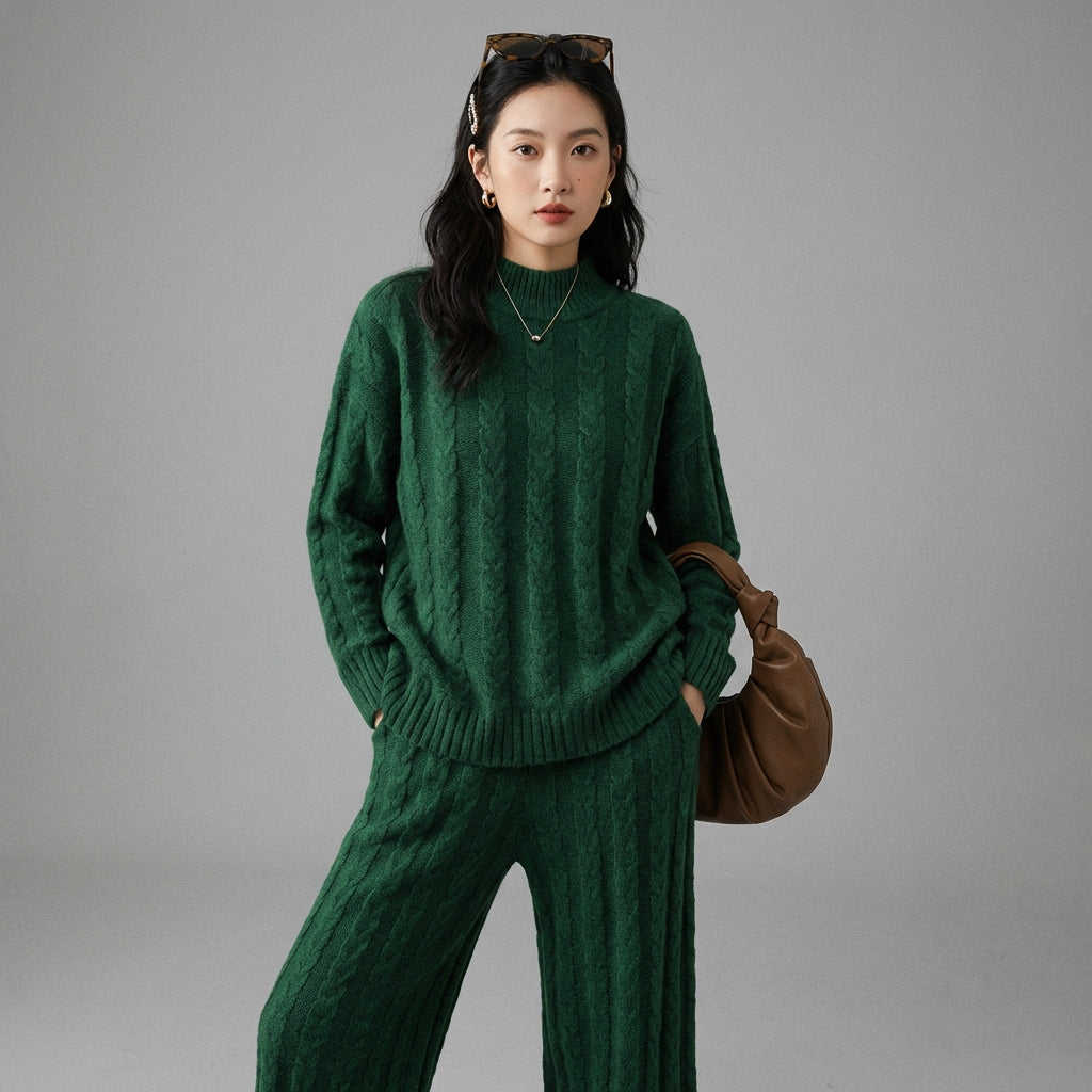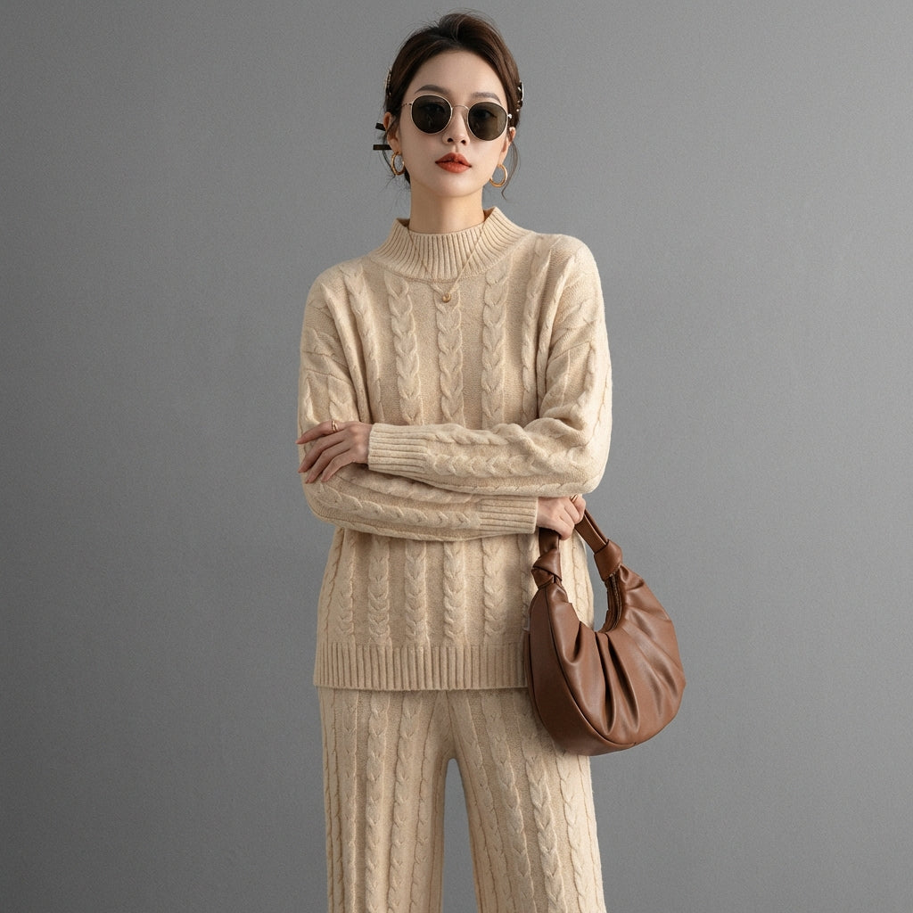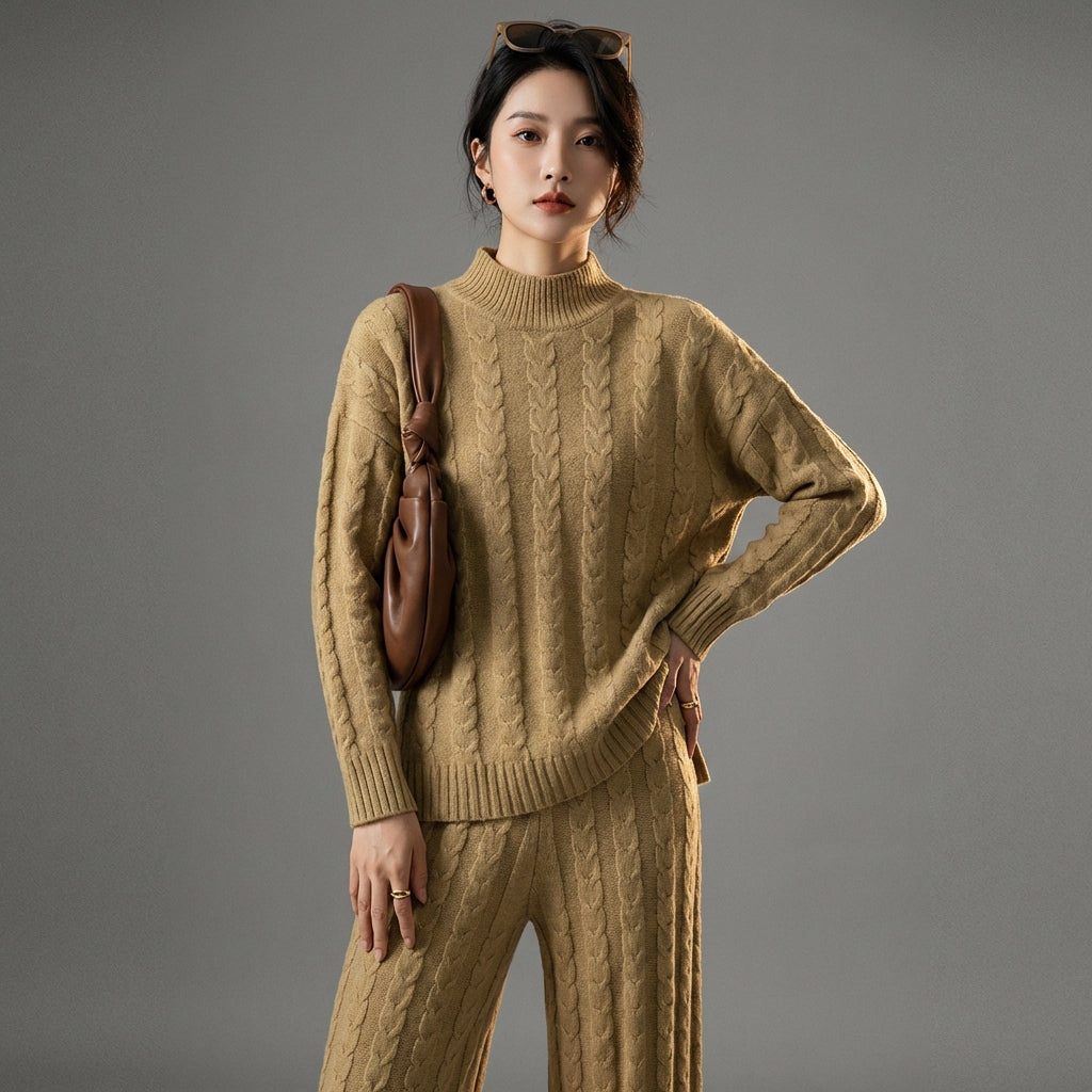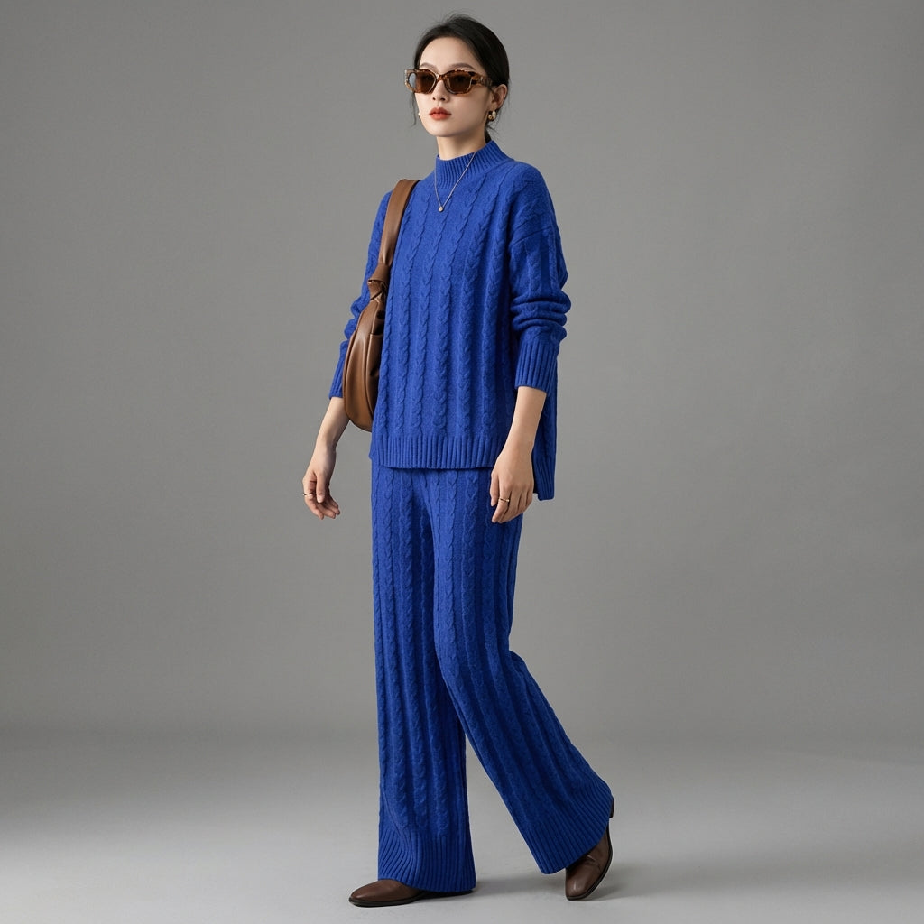 Entdecken Sie unser ultra-trendiges zweiteiliges Set, bestehend aus einem Pullover mit Halbkragen und einer hoch taillierten Hose mit weitem Bein. Dieses Set ist perfekt für einen lässig-schicken Look oder ein modernes Büro-Outfit, das Komfort und Eleganz vereint! ✨