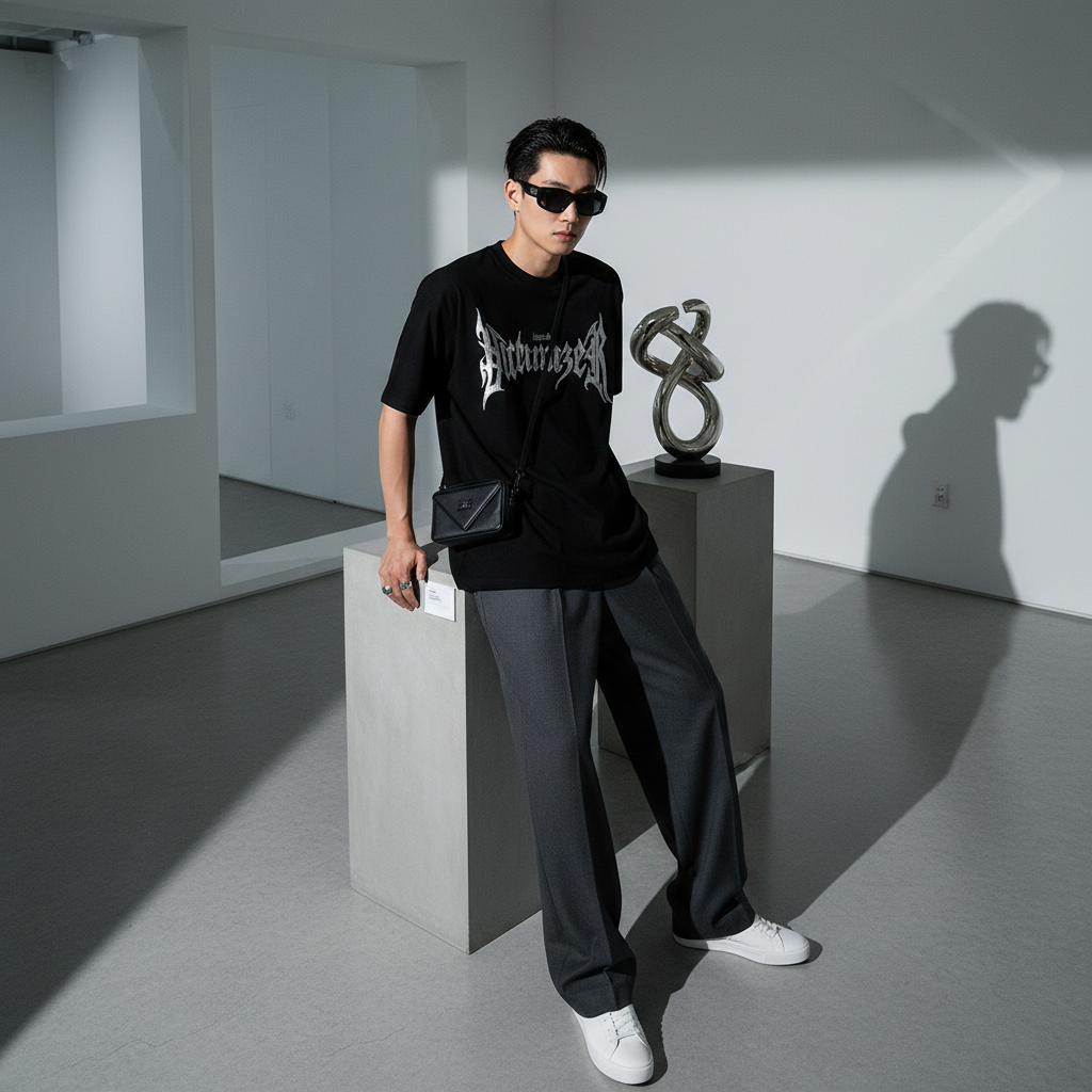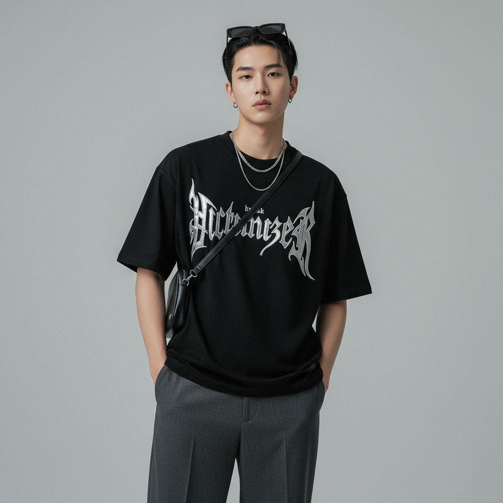 - Stil: Streetwear, Retro, K-Fashion. Dieses T-Shirt verkörpert die Essenz der koreanischen Streetwear mit einem Vintage-Touch, perfekt für einen urbanen und lässigen Look.