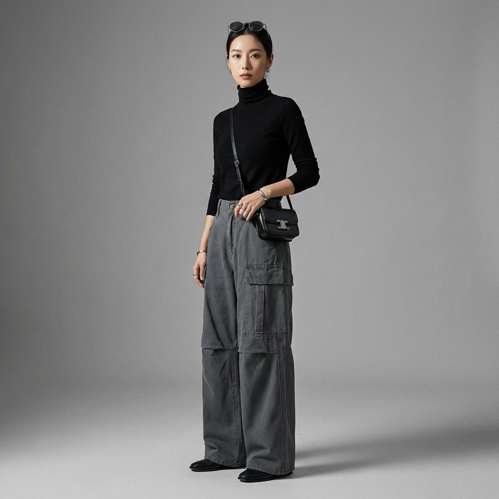 - Typ: Weite Hose, Mittelhoher Bund. Ein lässiger Schnitt, der Bewegungsfreiheit und eine elegante Silhouette bietet.