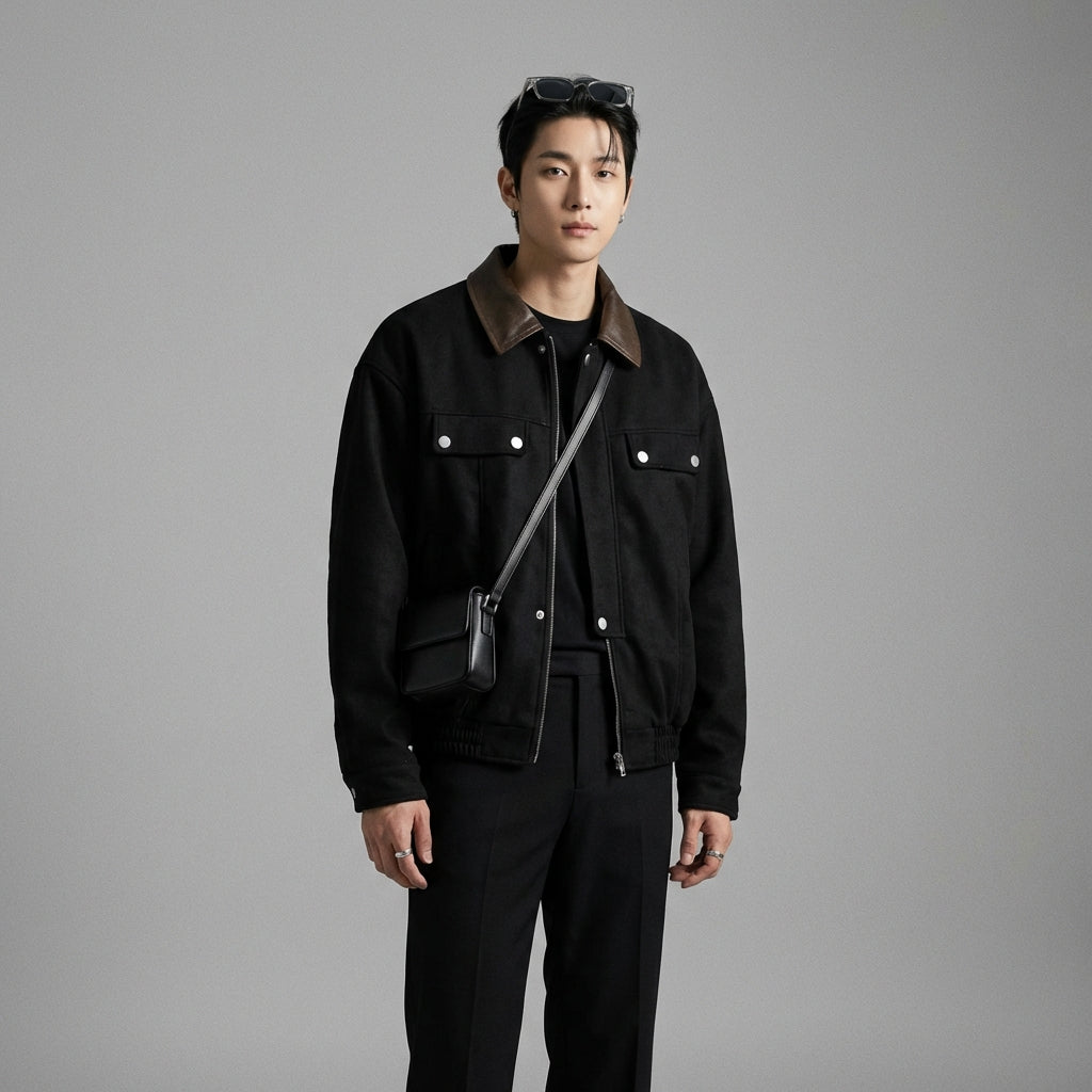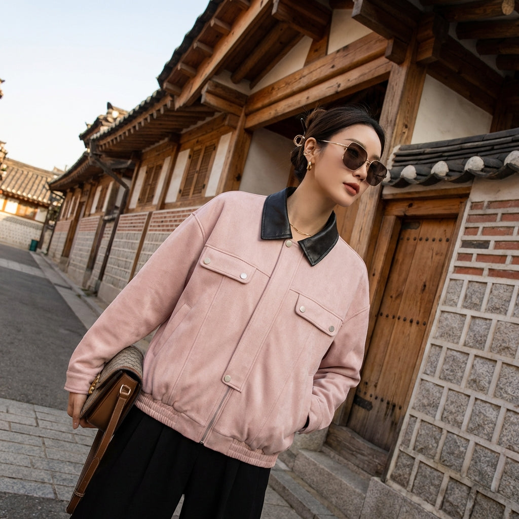 Kreieren Sie einen lässigen und raffinierten Look mit unserer Retro-Wildleder-Kragenjacke. Perfekt für einen urbanen Auftritt oder einen Abend mit Freunden, sie vereint Komfort und Trend für alle Gelegenheiten! ✨