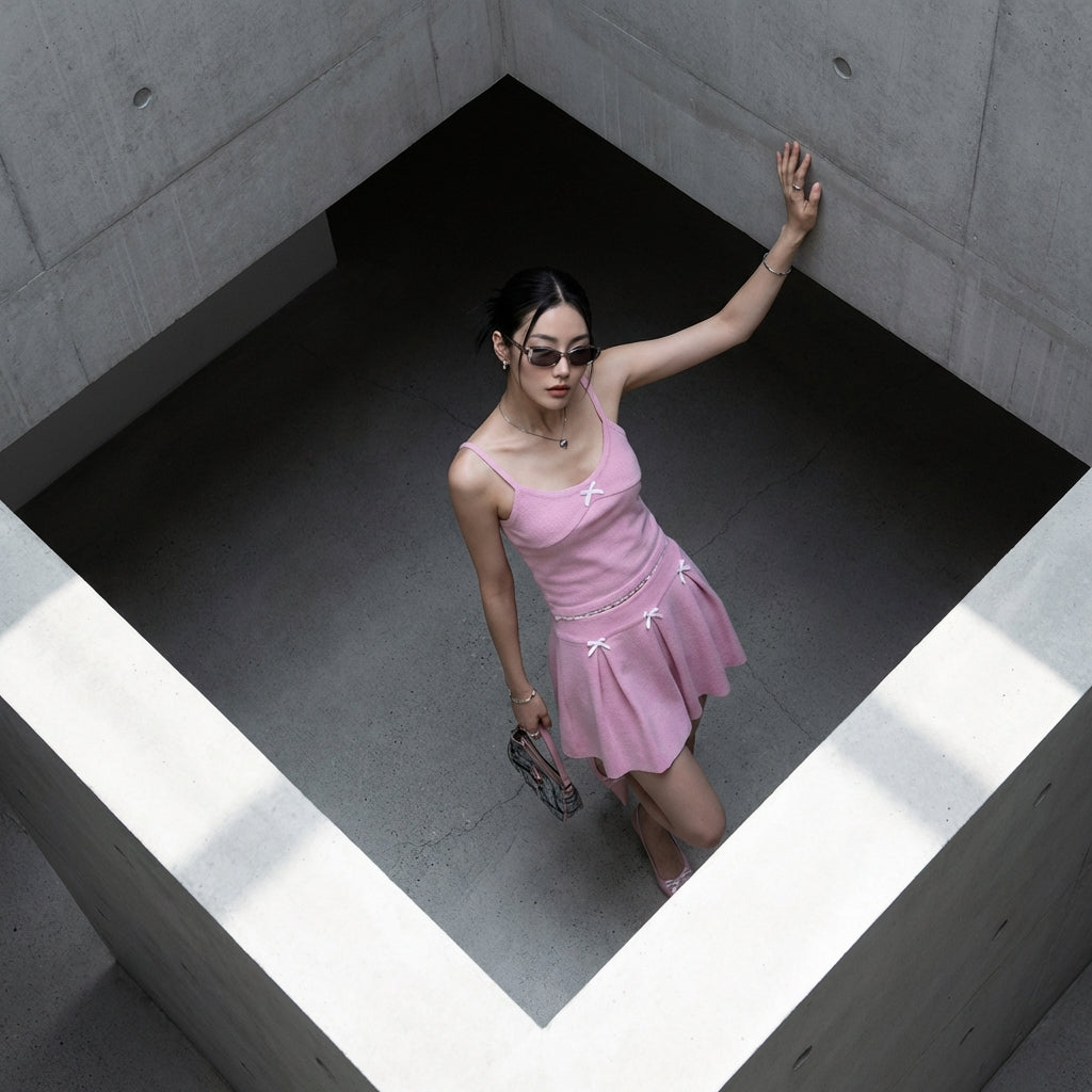 Kreieren Sie einen frischen und modernen Look mit diesem charmanten Set, bestehend aus einem zarten Top mit Schleife und einem kurzen Faltenrock. Perfekt für einen femininen und trendigen Auftritt! 🎀