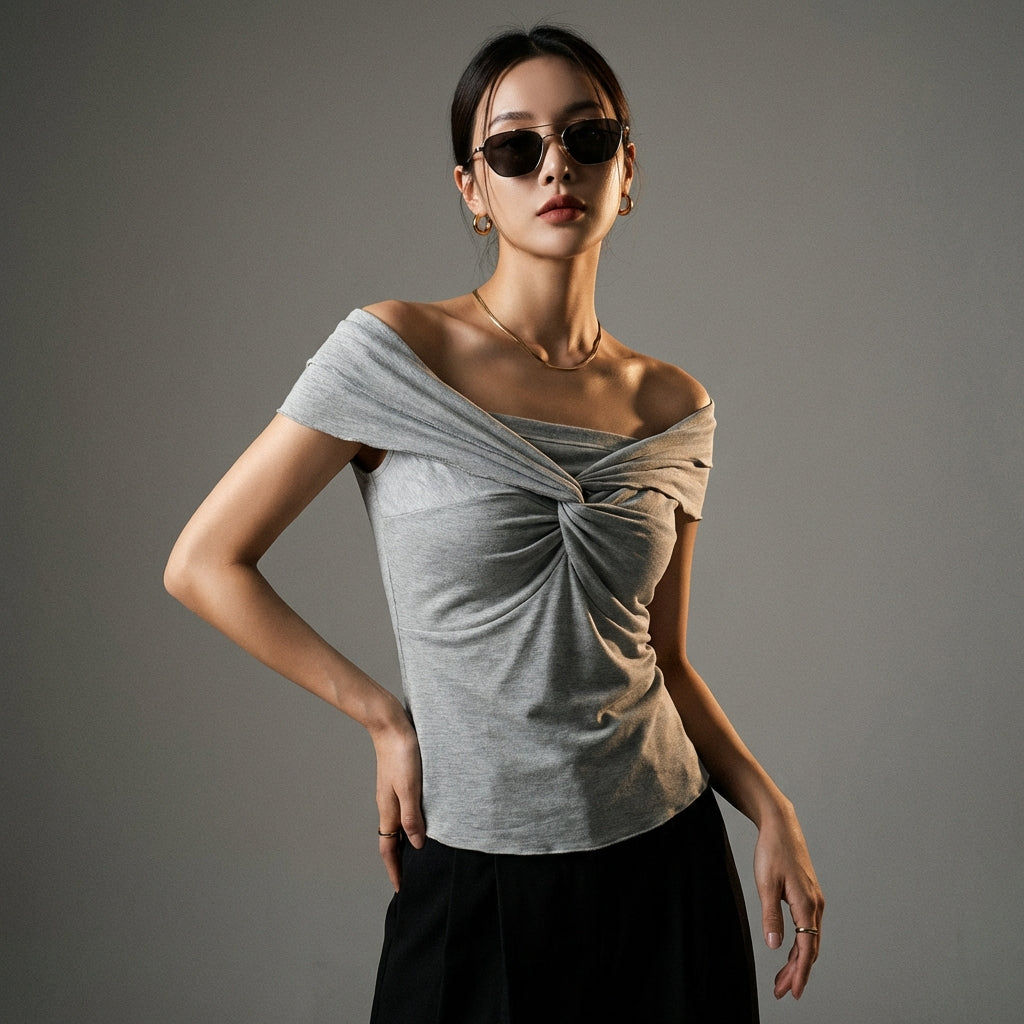 Entscheiden Sie sich für dieses One-Shoulder-T-Shirt und verleihen Sie Ihrer Sommergarderobe einen Hauch von gewagter Raffinesse, während Sie den Komfort eines angenehmen Materials genießen.