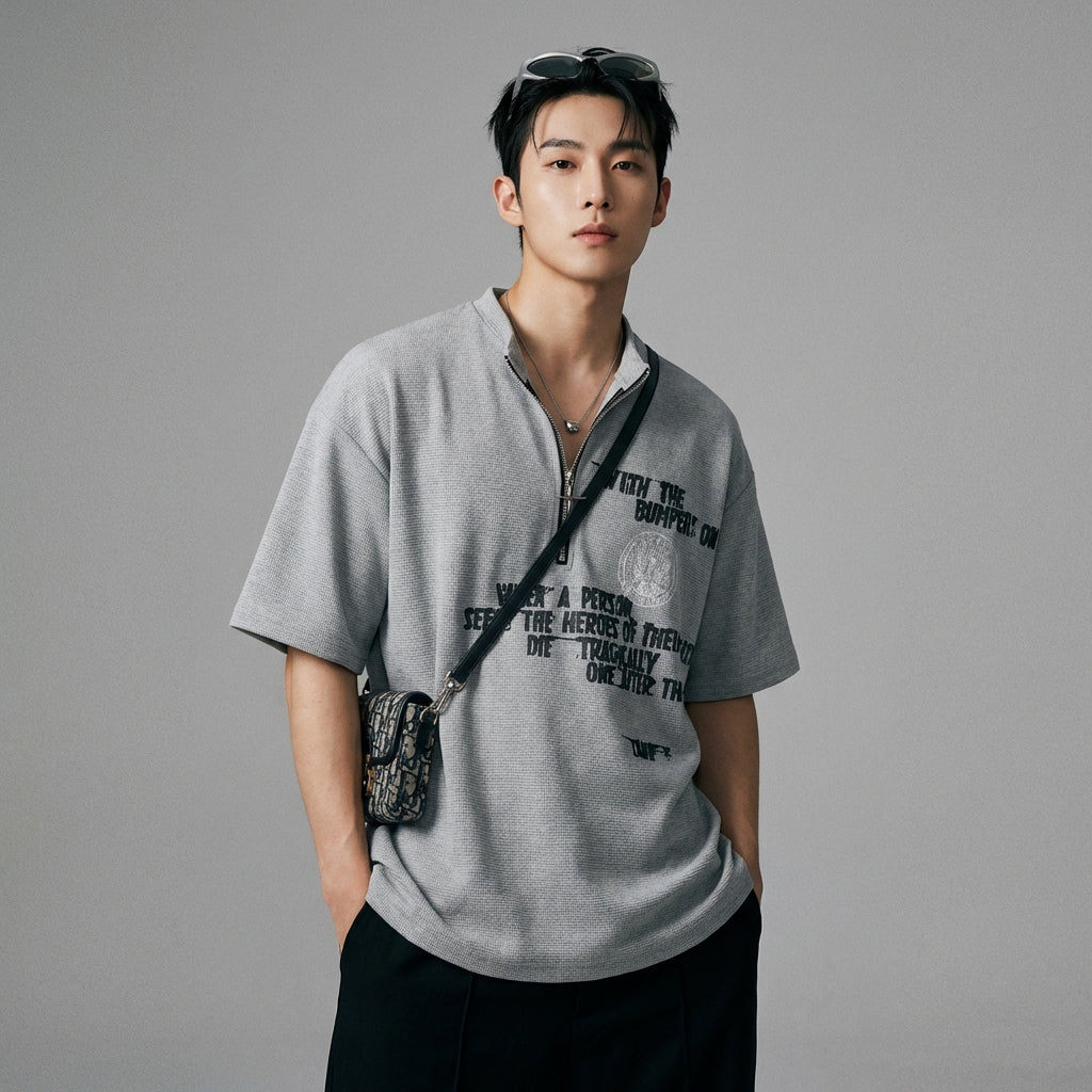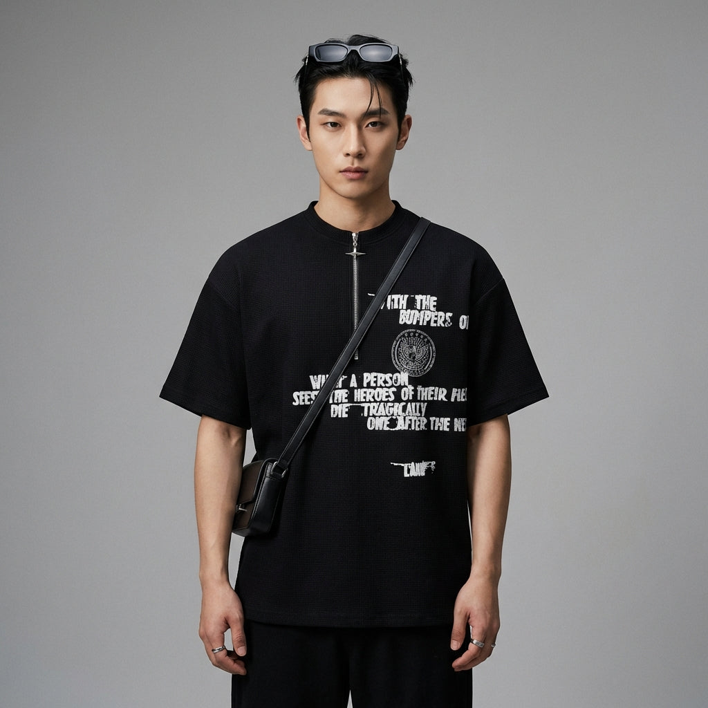 Betonen Sie Ihren urbanen Stil mit unserem kurzärmeligen T-Shirt mit Rundhalsausschnitt, halbem Reißverschluss und lockerer Passform. Dieses trendige Oberteil ist perfekt für einen lässigen und modernen Look, ideal für all Ihre Sommerausflüge! 👕