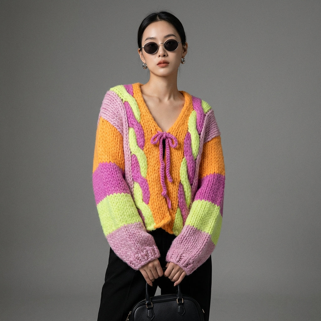 - Stil: Koreanische Mode, Casual, Sanft, Trendig. Dieser Cardigan verkörpert lässige Eleganz, inspiriert von K-Fashion, perfekt für einen sanften und modernen Look.