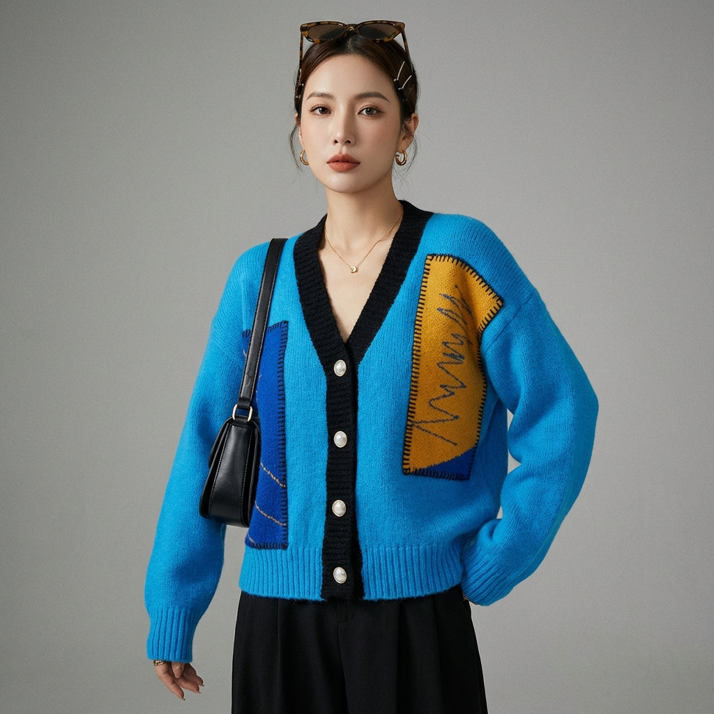 Dieser Cardigan ist das ideale Kleidungsstück zum Kombinieren und Kreieren vielfältiger Outfits, das koreanische Mode und alltäglichen Komfort vereint.