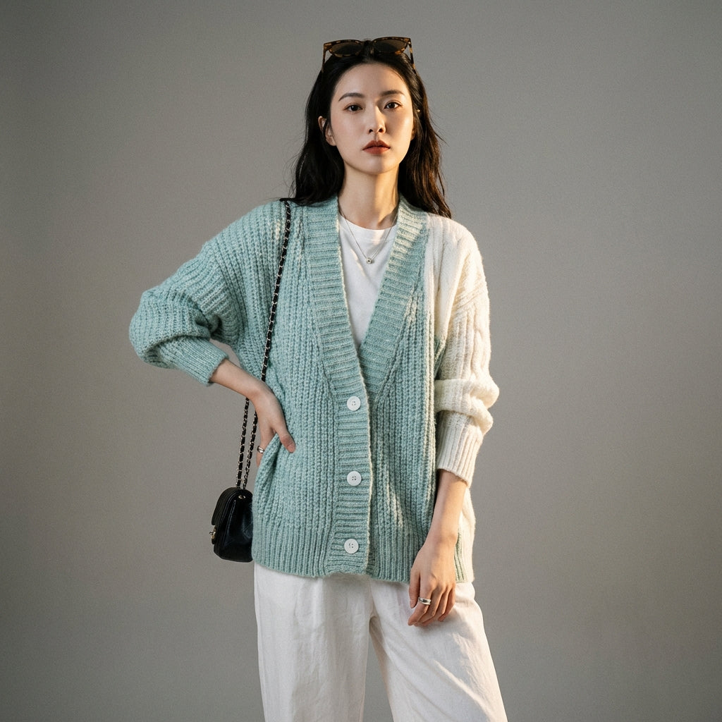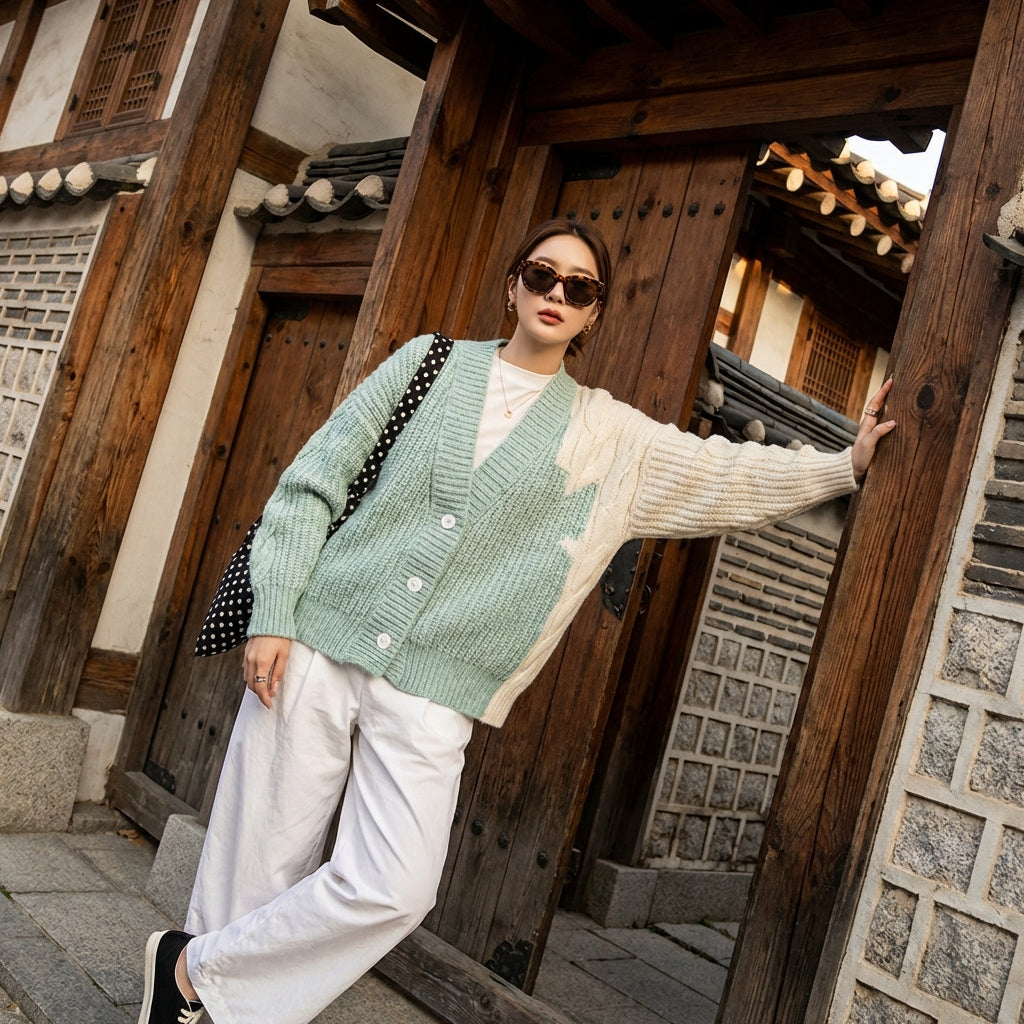 - Stil: Koreanische Mode, Casual Chic, Trend. Dieser Cardigan verkörpert die entspannte und moderne Ästhetik der K-Fashion, leicht zu kombinieren.
