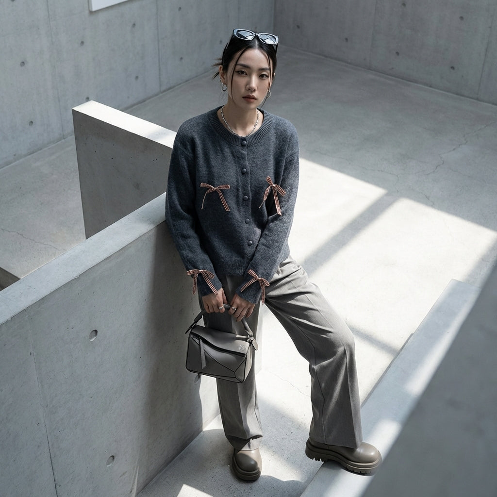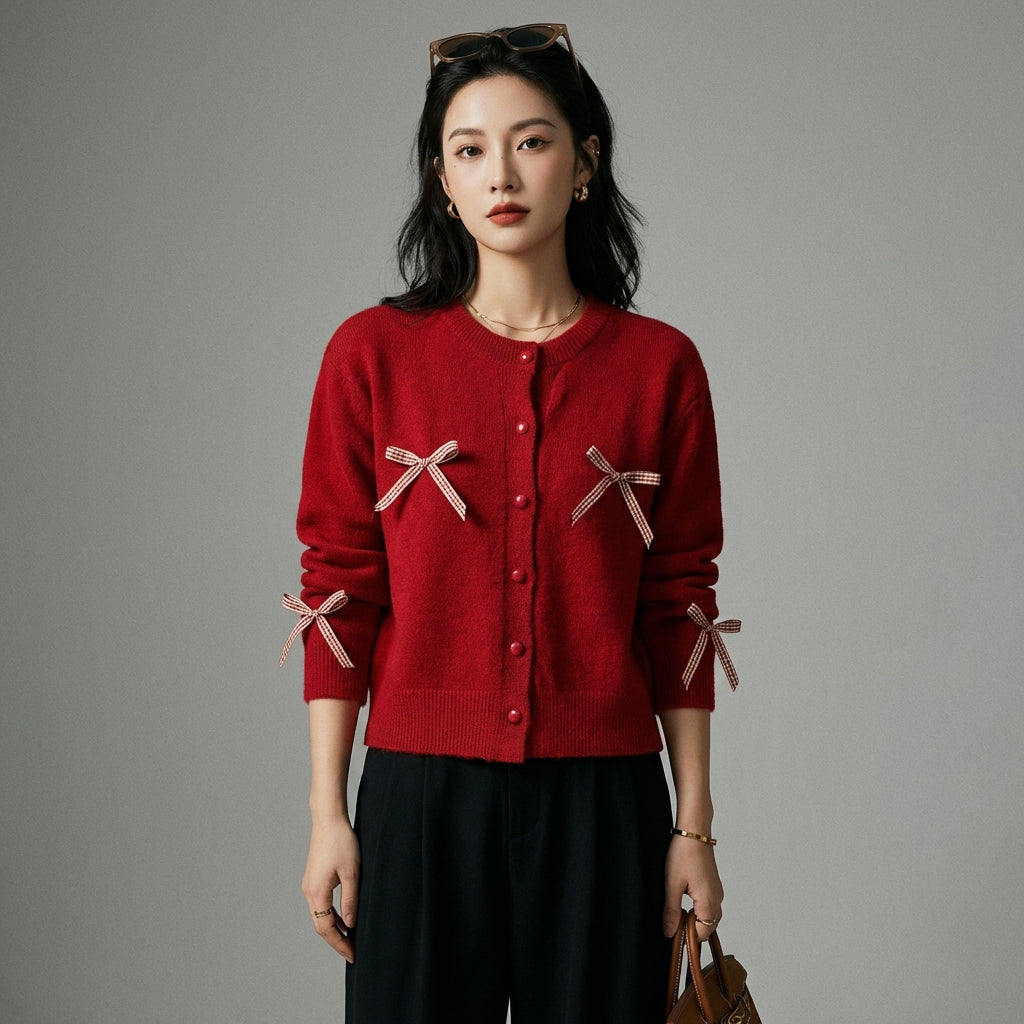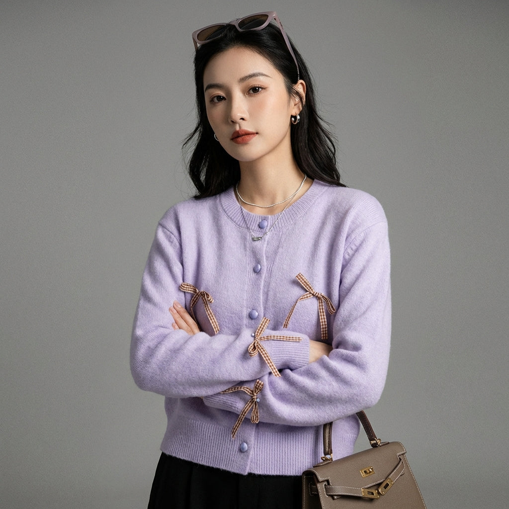 Kreieren Sie einen sanften und raffinierten Look mit unserem Strickcardigan, der durch charmante Schleifendetails veredelt wird. Dieser elegante und bequeme Pullover ist perfekt, um all Ihren Outfits einen Hauch von Raffinesse zu verleihen! 🎀