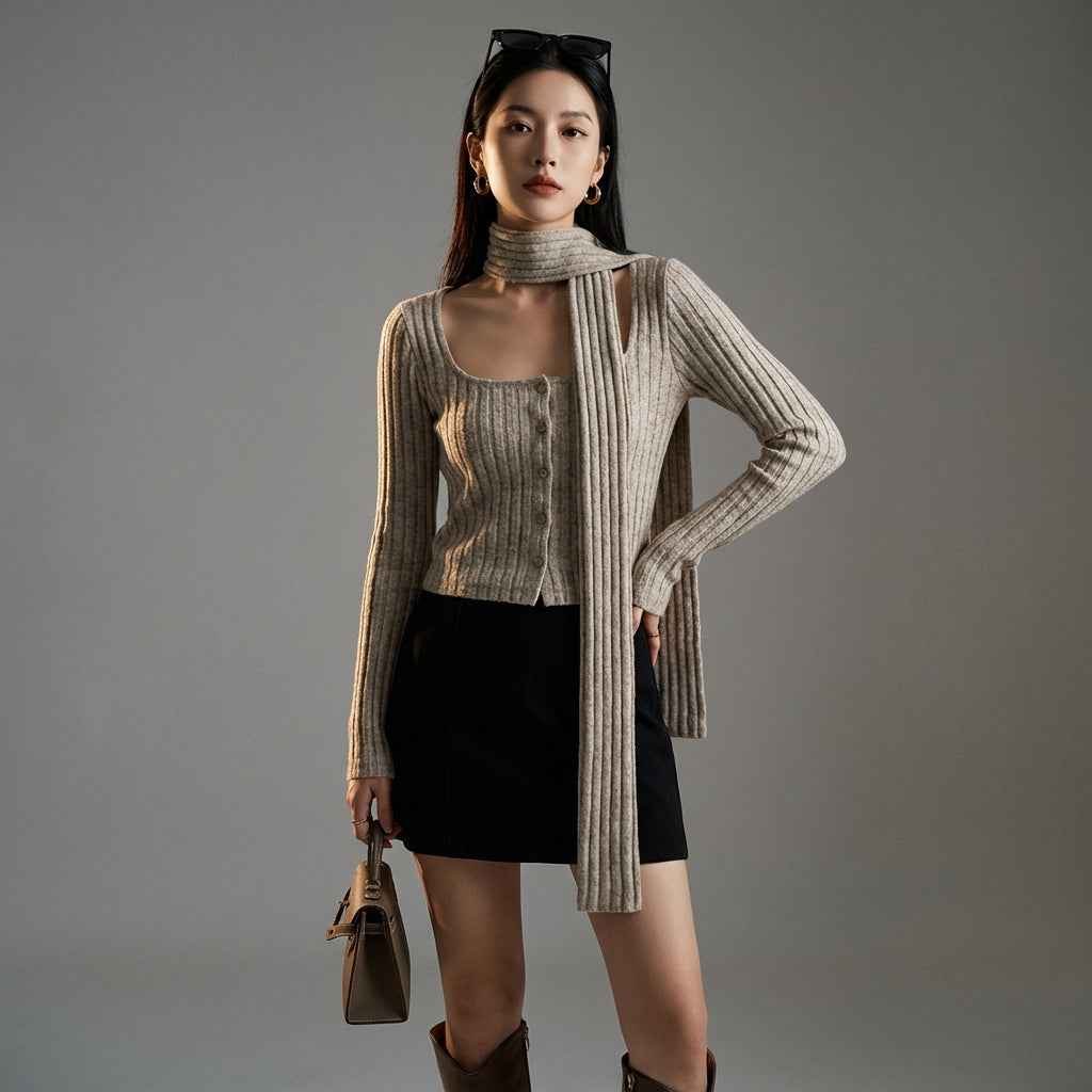 - Zusammensetzung: Hochwertiger Strick. Ein weicher und bequemer Stoff, der sich elegant an die Formen anpasst, ideal für alle Jahreszeiten.