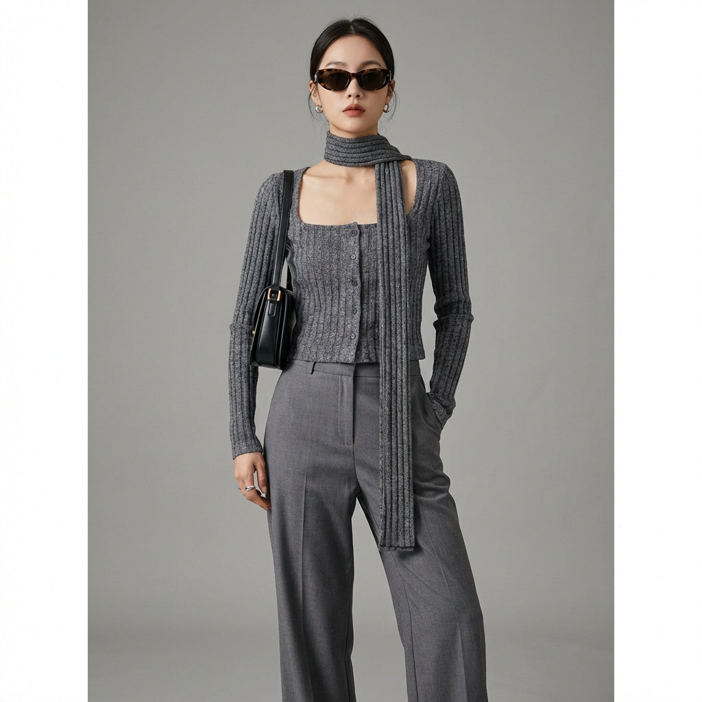 Betonen Sie Ihren Stil mit diesem gestrickten Top mit quadratischem Ausschnitt und langen Ärmeln, das für einen modernen und eleganten Look entworfen wurde. Seine figurbetonte Passform und sein raffiniertes Design machen es zu einem unverzichtbaren Stück für jede trendige Garderobe! ✨