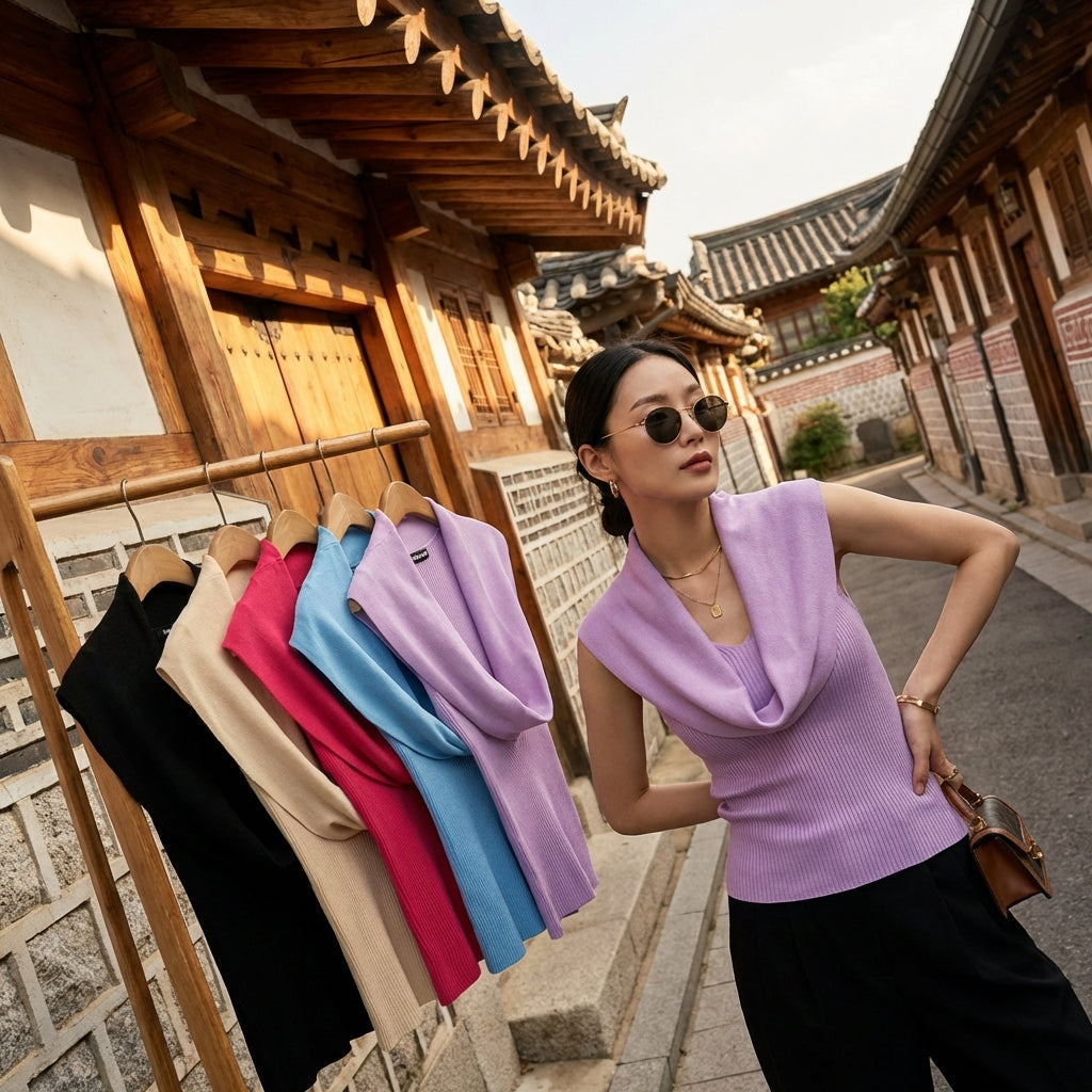 - Stil: Minimalistisch, K-Fashion, Trend. Dieses Top verkörpert die raffinierte Einfachheit der koreanischen Mode, ideal für einen urbanen oder anspruchsvollen Stil.