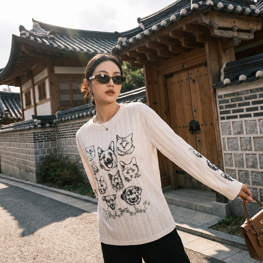 Kreieren Sie einen entzückenden und lässigen Look mit unserem Langarm-Sweatshirt, verziert mit einem charmanten Katzen- und Hundemuster. Sein lockerer Schnitt und Rundhalsausschnitt machen es zum idealen Kleidungsstück für optimalen Komfort und einen selbstbewussten Stil! 🐾