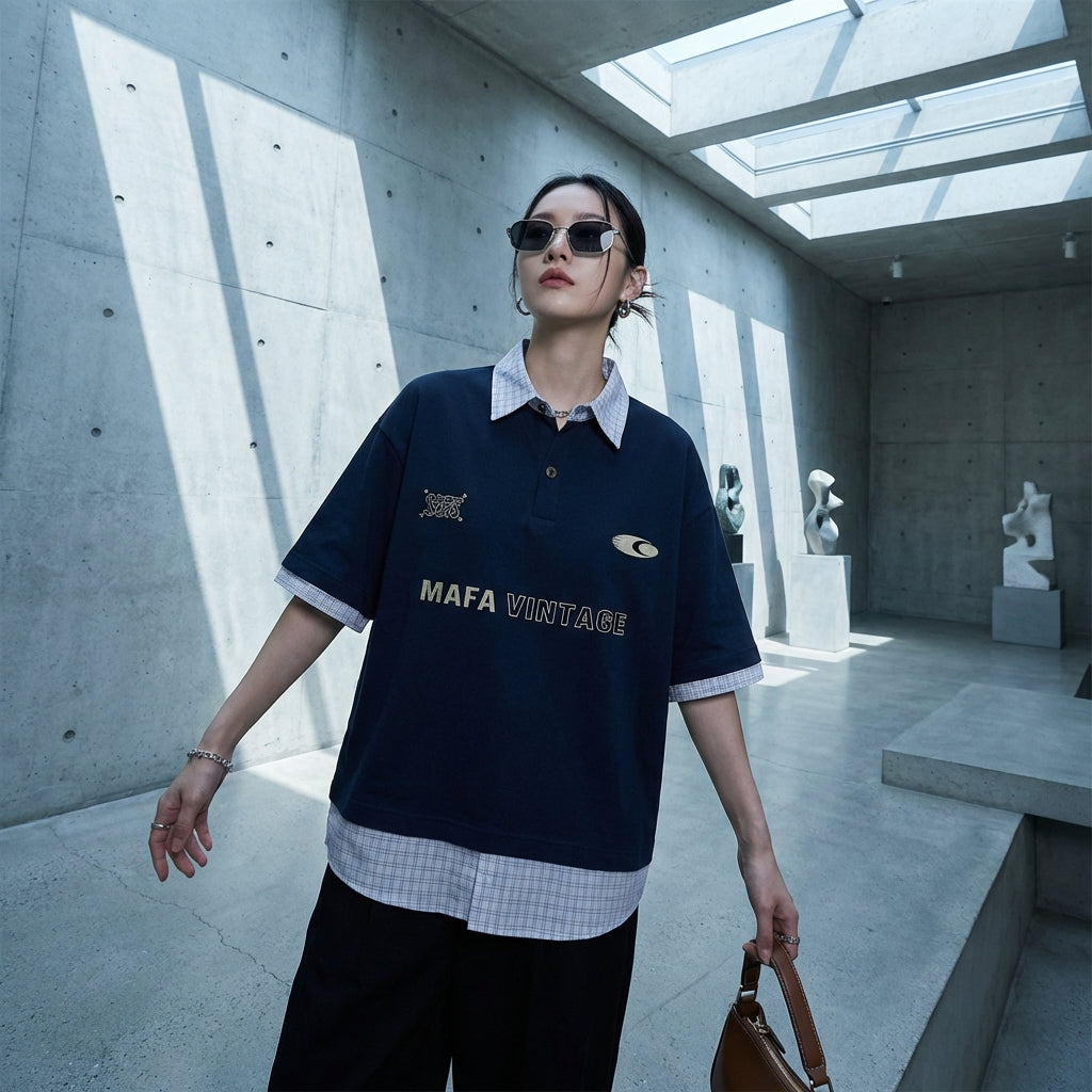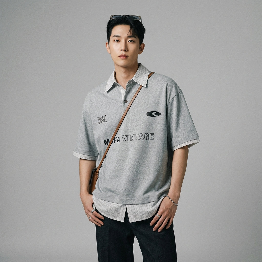 Kreieren Sie einen lässigen und trendigen Look mit unserem T-Shirt mit Reverskragen und Buchstabenprint. Dieses Oberteil im „Zweiteiler“-Look wurde für Komfort und Stil entworfen und ist perfekt für einen stilvollen und lässigen Sommer, sowohl für sie als auch für ihn! ✨