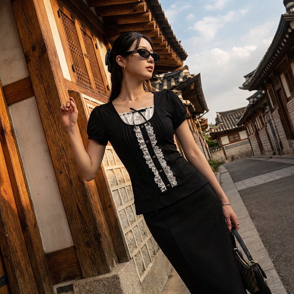- Stil: K-Fashion, Trendig, Frisch. Dieses T-Shirt verkörpert den modernen koreanischen Stil mit seinen lebhaften Farbakzenten und seinem klaren Design.