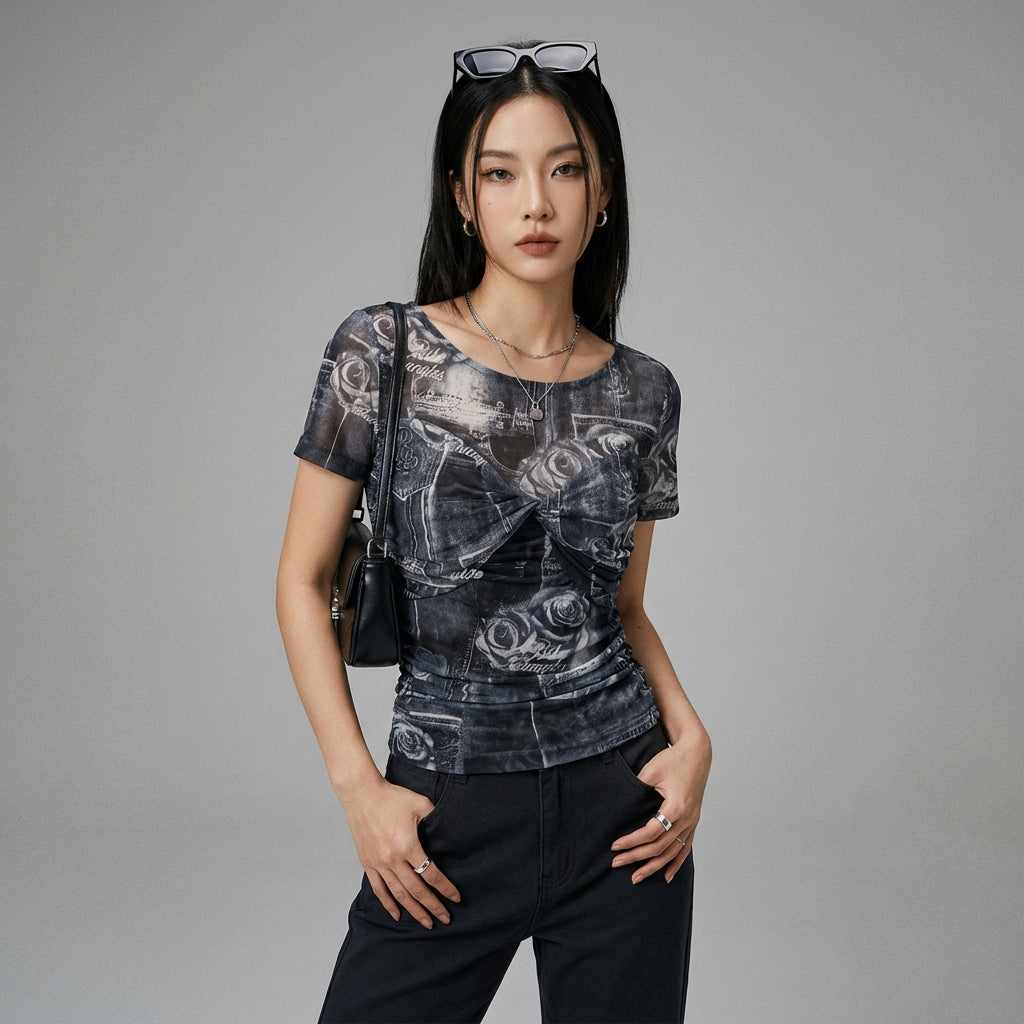 T-shirt Tie-Dye effet 3D double couche mesh noir et bleu - Koreanxwear
