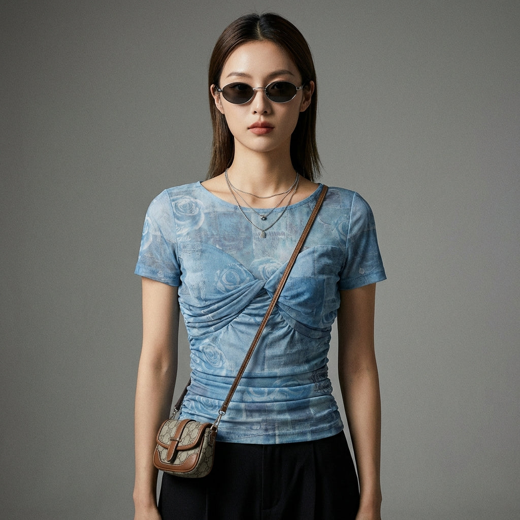 T-shirt Tie-Dye effet 3D double couche mesh noir et bleu - Koreanxwear - Taille S