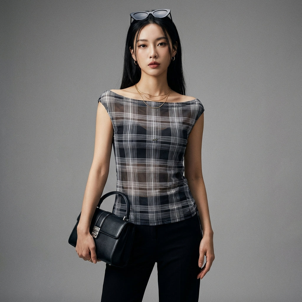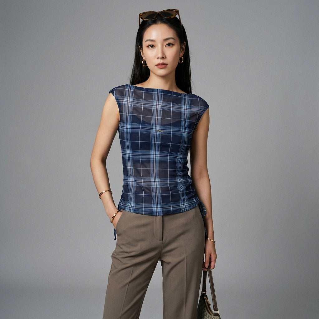Betonen Sie Ihren Stil mit unserem schmal geschnittenen Tanktop mit Karomuster, perfekt für eine moderne und trendige Silhouette. Sein ärmelloses Design und die figurbetonte Passform unterstreichen Ihre Ausstrahlung mit Eleganz! ✨