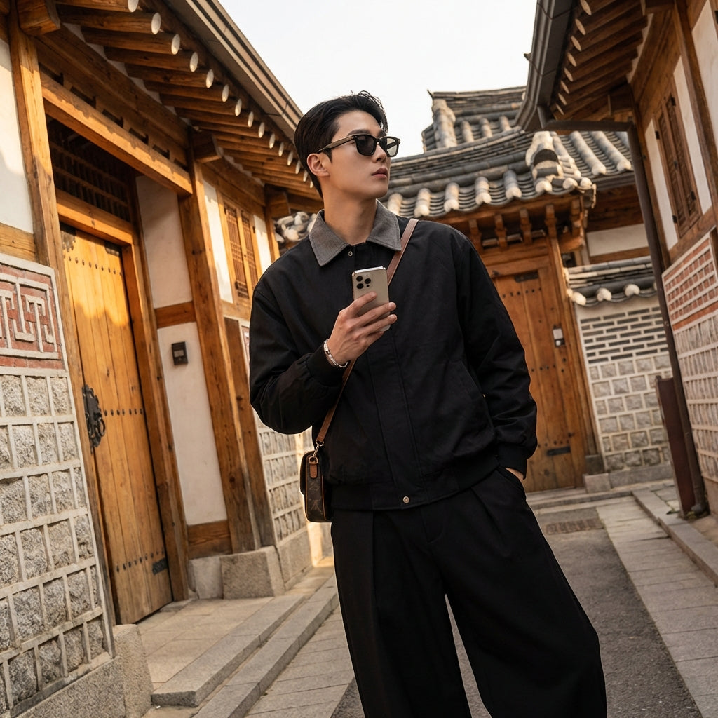 • Stil: Streetwear, K-Fashion, Urban. Diese Jacke verkörpert den Geist der koreanischen Mode und des urbanen Stils, mit einem Hauch von Originalität.