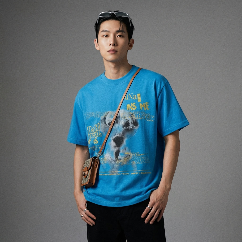 - Stil: Streetwear, Vintage, K-Fashion. Eine perfekte Mischung aus Retro-Charme, Streetwear-Trend und der lässigen Ästhetik der koreanischen Mode.