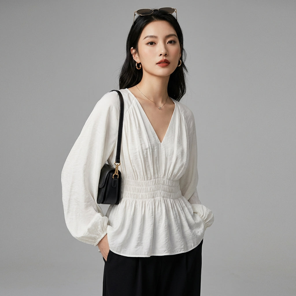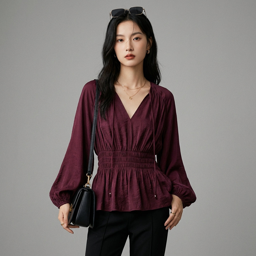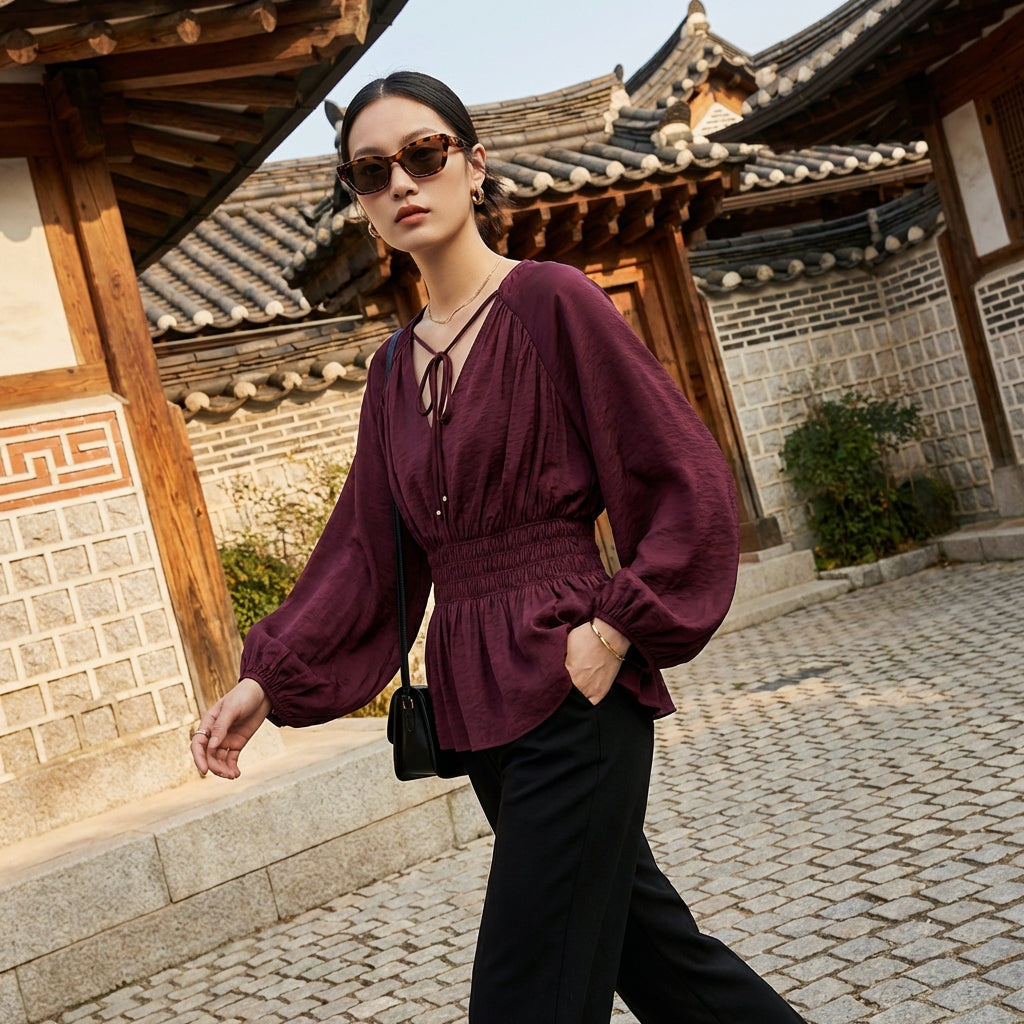 - Stil: K-Fashion, Elegant, Trendig. Diese Bluse verkörpert die Raffinesse der koreanischen Mode, perfekt für einen sowohl schicken als auch aktuellen Stil.