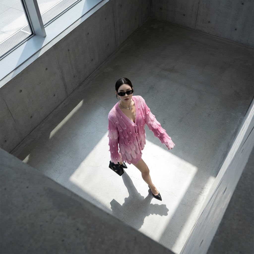 Kreieren Sie einen lässigen und eleganten Look mit unserem gestrickten Pullover mit Farbverlauf. Sein V-Ausschnitt und die langen Ärmel bieten eine bequeme und moderne Passform, perfekt für alle Gelegenheiten. Die subtilen Perlen-Details verleihen diesem unverzichtbaren Kleidungsstück einen Hauch von Raffinesse! ✨
