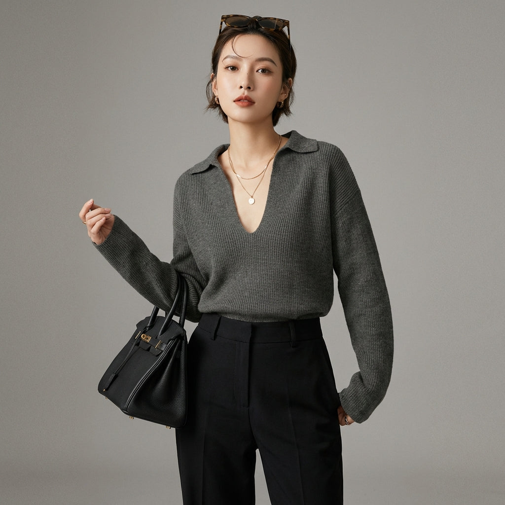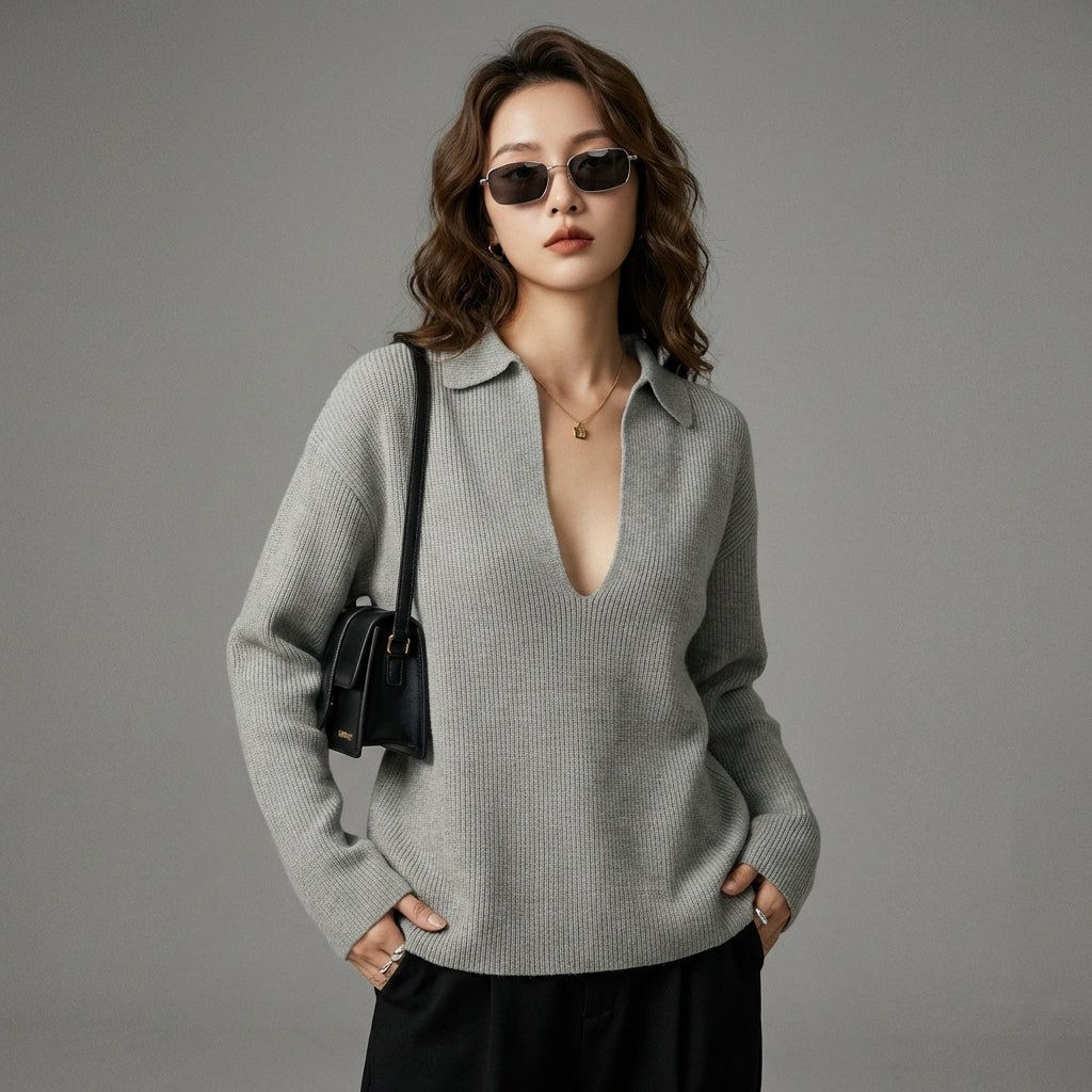 - Stil: Schick, minimalistisch, K-Fashion. Dieser Pullover verkörpert schlichte und moderne Eleganz, inspiriert von koreanischen Trends.