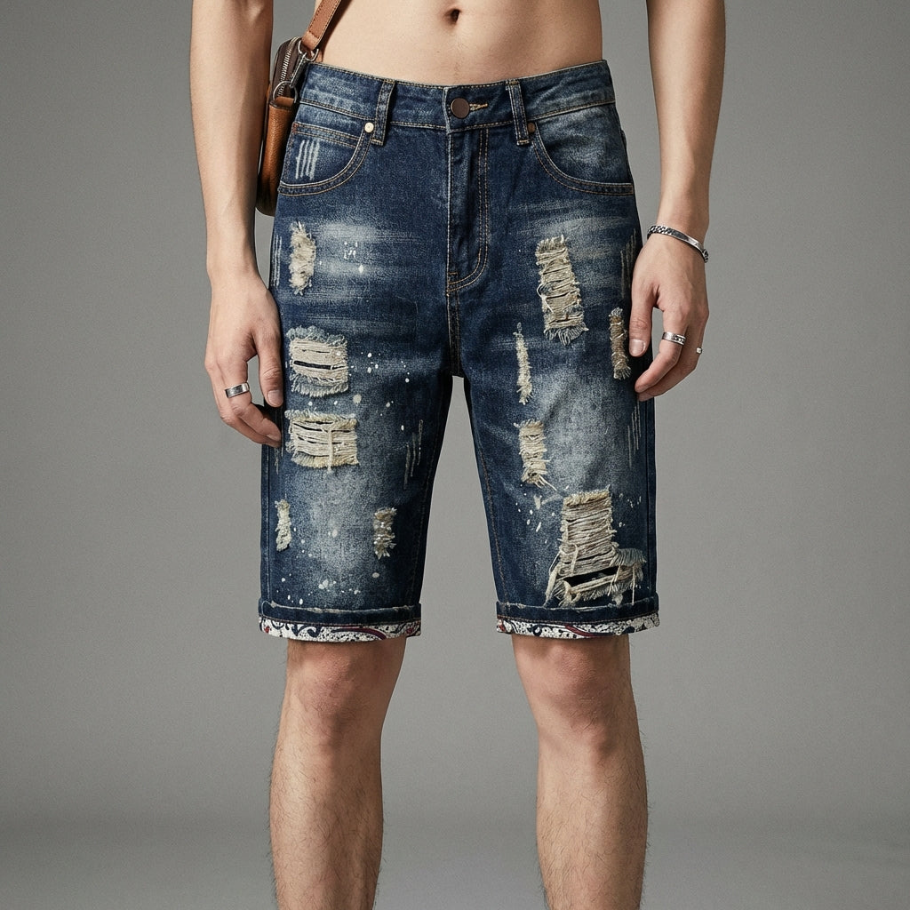 Kreieren Sie einen lässigen und trendigen Look mit unseren Used-Denim-Shorts, perfekt für sonnige Tage. Diese Shorts verfügen über subtile Rissdetails und umgeschlagene Säume für einen Streetwear-Touch. Ideal für einen selbstbewussten und bequemen Stil! ☀️