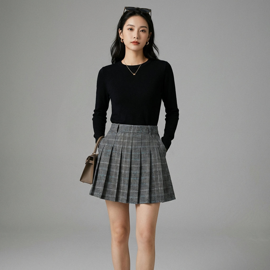 - Stil: Koreanische Mode, Retro, Trendig, Akademisch. Dieser Rock verkörpert die frische und süße Ästhetik der K-Fashion, mit einem Vintage-Touch, der immer in Mode bleibt. Perfekt für einen Preppy- oder Streetwear-Look.