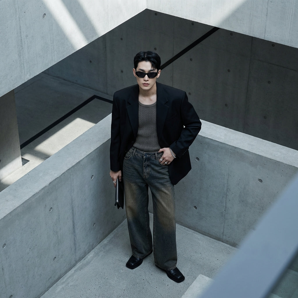 - Stil: Retro, Streetwear, Koreanisch. Diese Jeans verkörpert den zeitlosen Charme des Retro-Stils, neu interpretiert mit einem modernen Streetwear-Touch, inspiriert von der koreanischen Mode.