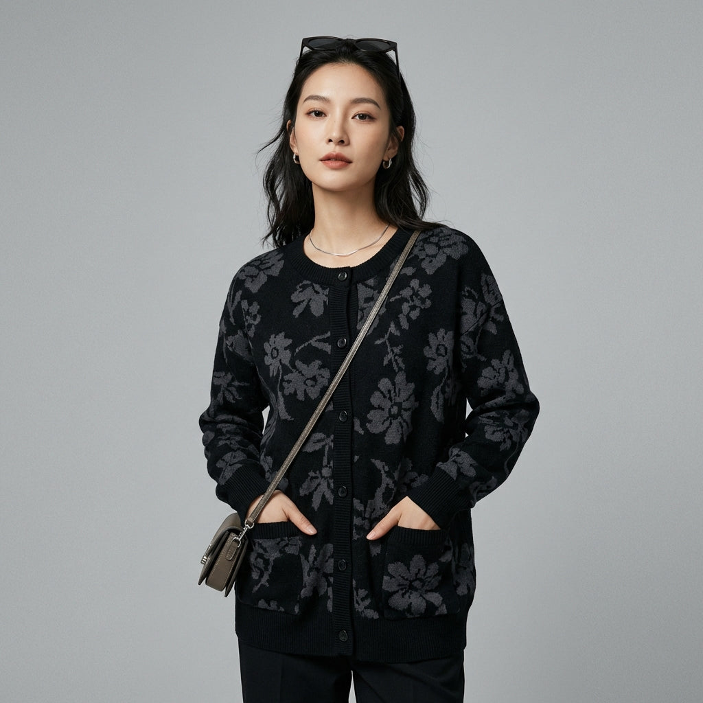 Kreieren Sie einen sanften und zeitlosen Look mit unserem Rundhals-Strickcardigan, verziert mit zarten Blumenmustern. Sein lockerer und bequemer Schnitt macht ihn zu einem unverzichtbaren Kleidungsstück für alle Jahreszeiten und verleiht Ihrem Outfit einen Hauch von Frische und Eleganz! 🌸