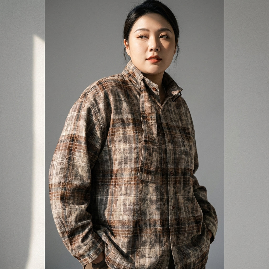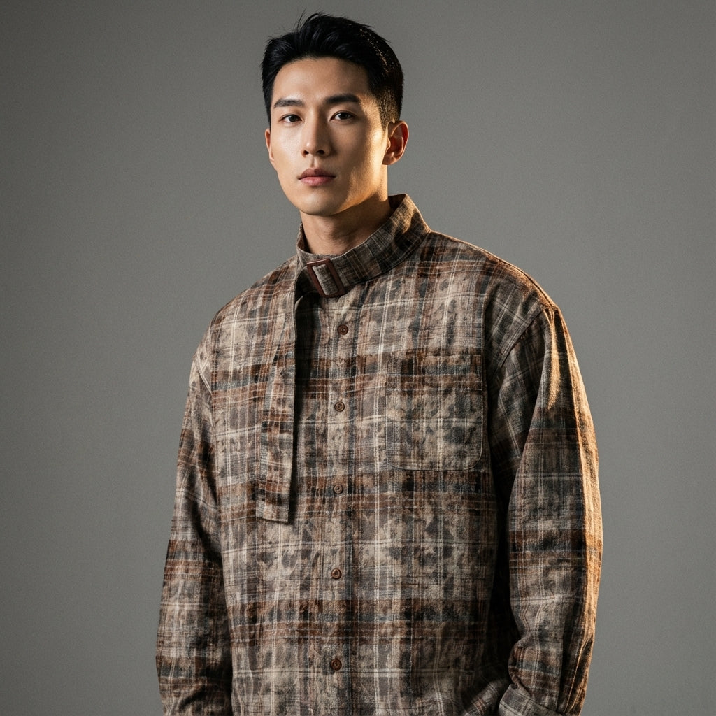 Kreieren Sie einen lässigen und trendigen Look mit unserem Tie-Dye-Karohemd. Der Stehkragen und die weite Passform machen es zu einem bequemen und stilvollen Kleidungsstück, perfekt für jeden Anlass! 🌟