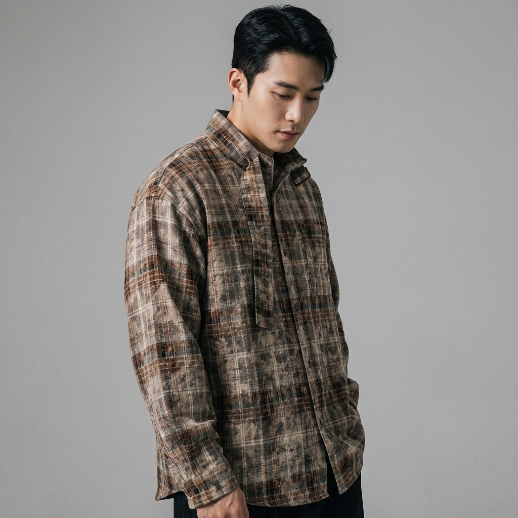 - Stil: Streetwear, Vintage, Casual, K-Fashion. Dieses Hemd kombiniert die Ästhetik des Streetwear mit einem Vintage- und lässigen Touch, der in der koreanischen Mode sehr beliebt ist.