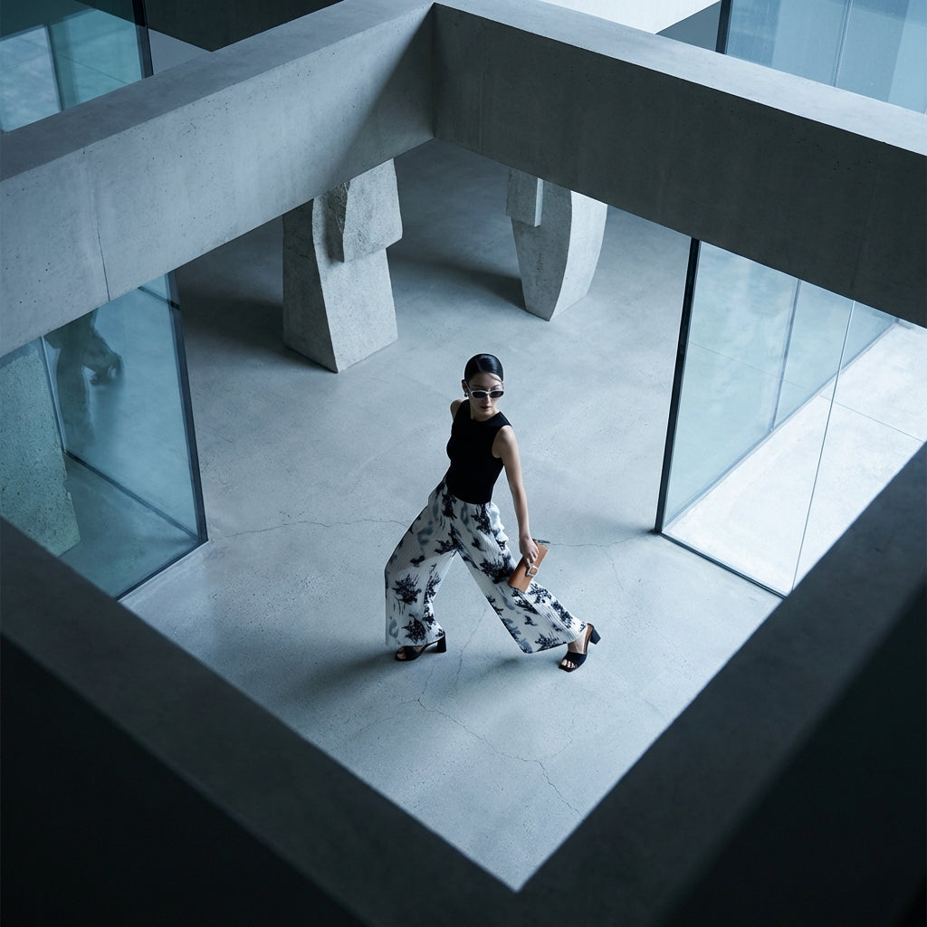 - Typ: Weit, Gerade, Hohe Taille. Ein schmeichelhafter Schnitt, der die Silhouette verlängert und Komfort und Eleganz bietet.