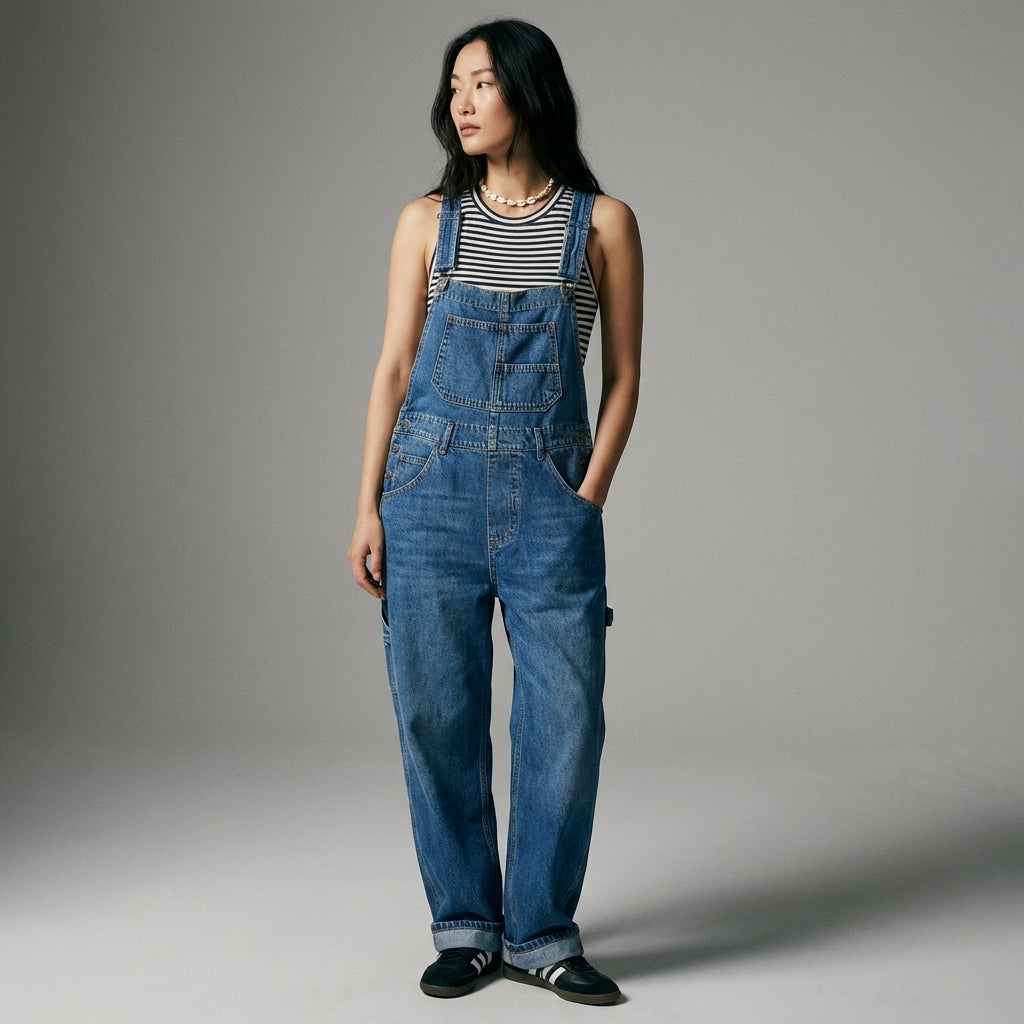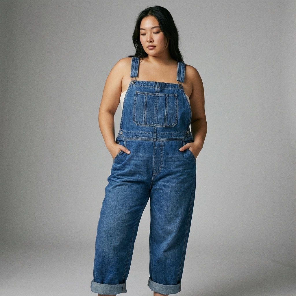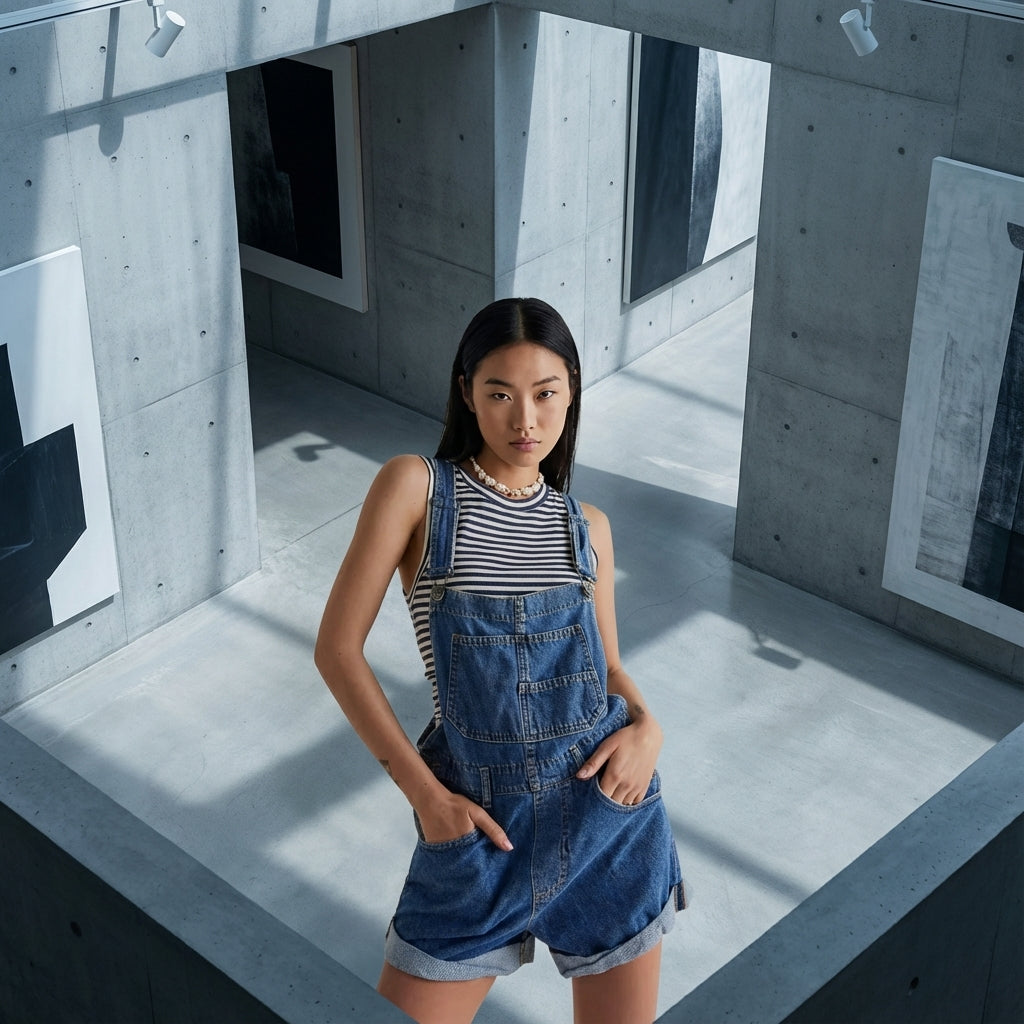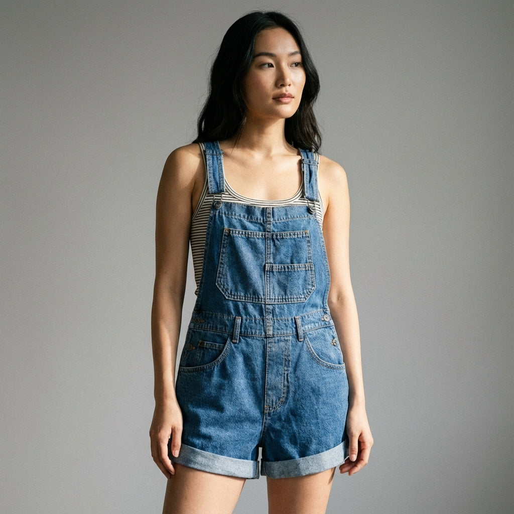 Diese Jeans-Latzhose ist ein Must-have für alle, die ein bequemes und zugleich stilvolles Kleidungsstück suchen, das sich leicht in eine moderne, von koreanischer Mode inspirierte Garderobe integrieren lässt.