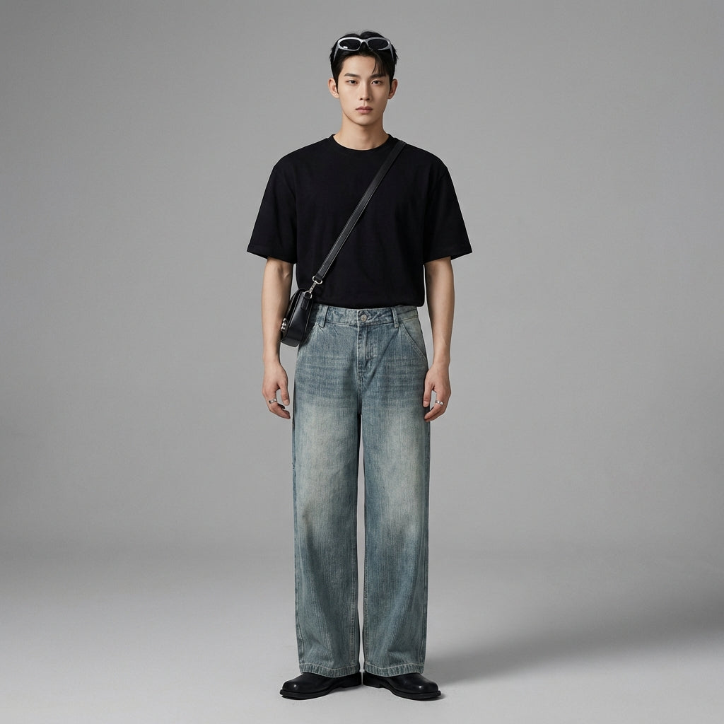 Diese verwaschene Jeans ist ein Schlüsselstück für alle, die Komfort, Stil und einen Hauch von lässiger koreanischer Mode in ihrer Garderobe kombinieren möchten.