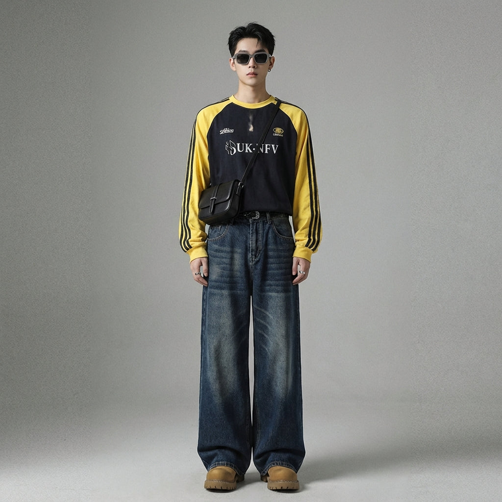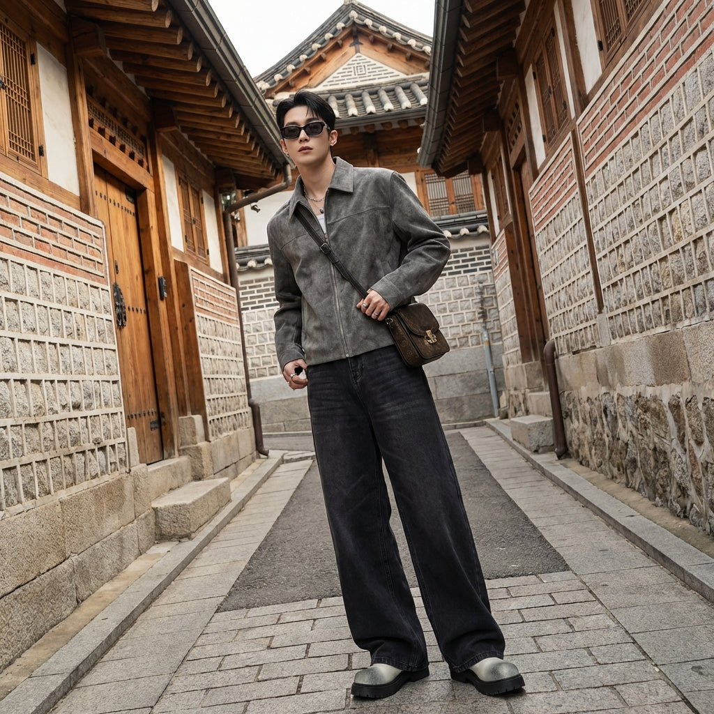 - Stil: Streetwear, Lässig, Koreanische Mode. Diese Jeans verkörpert die urbane und lässige Ästhetik, die in der K-Fashion sehr beliebt ist.