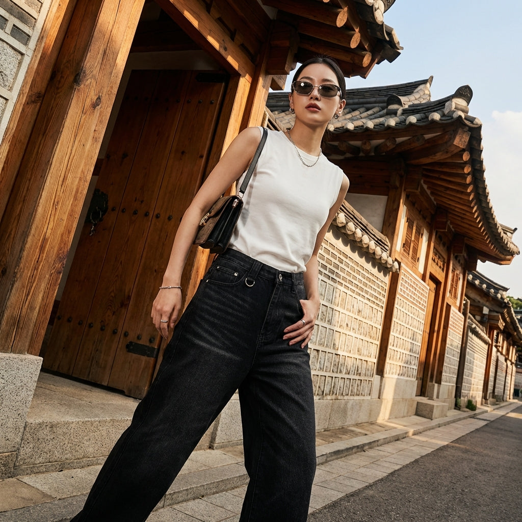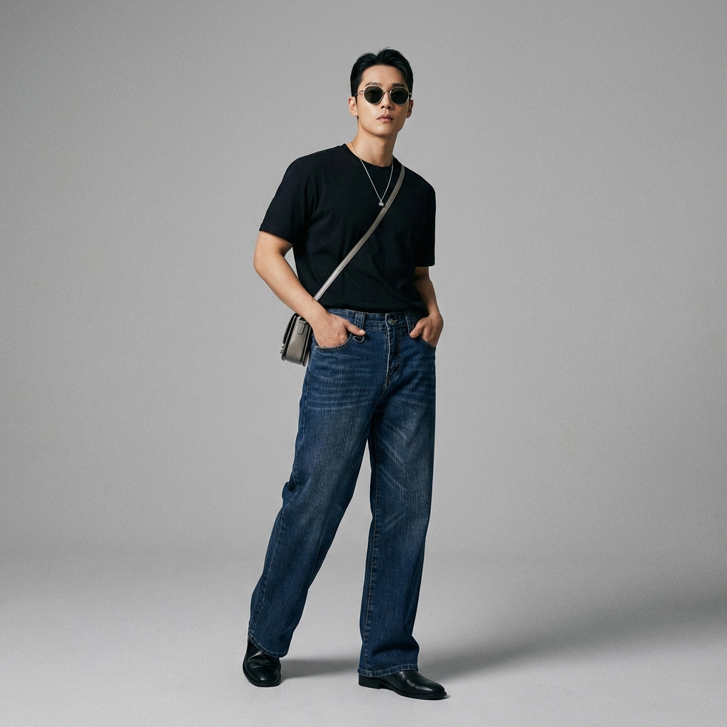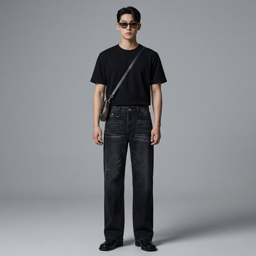 - Stil: Streetwear, Minimalistisch, K-Fashion. Diese Jeans verkörpert die Essenz der koreanischen urbanen Mode, perfekt für einen lässigen und stilvollen Look.