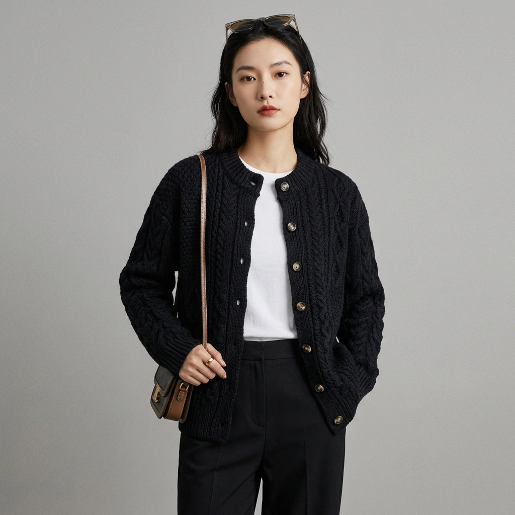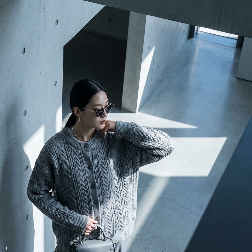 - Typ: Cardigan, Weit. Ein Oversize-Schnitt, der Komfort und Bewegungsfreiheit bietet und dabei elegant bleibt.