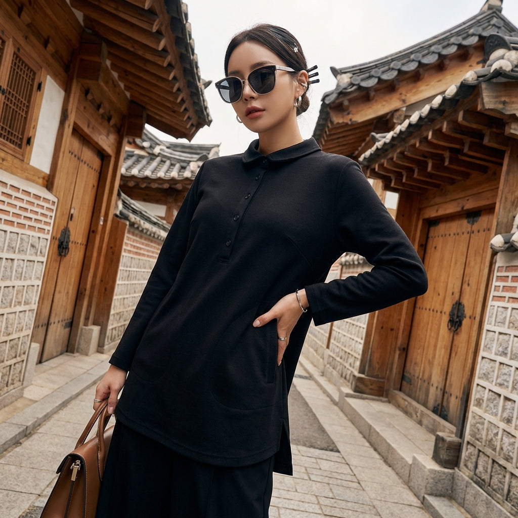 - Stil: Koreanische Mode, Streetwear, Urban. Dieses Hemd verkörpert den Geist der koreanischen Mode mit einem urbanen Touch, ideal für einen trendigen und lässigen Look. Die Knöpfe verleihen einen eleganten und praktischen Abschluss.