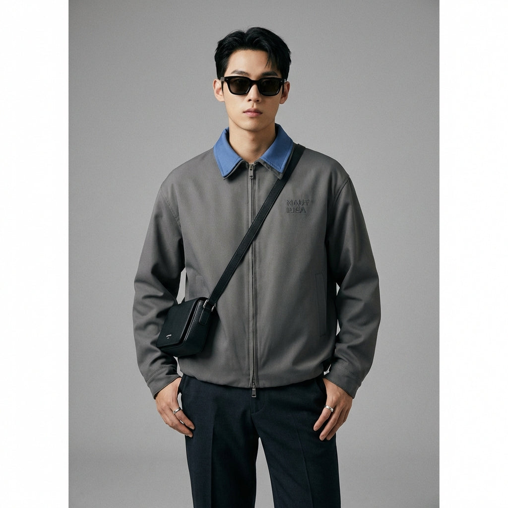 Veste homme bicolore décontractée grise et bleue - Mode Coréenne K-fashion