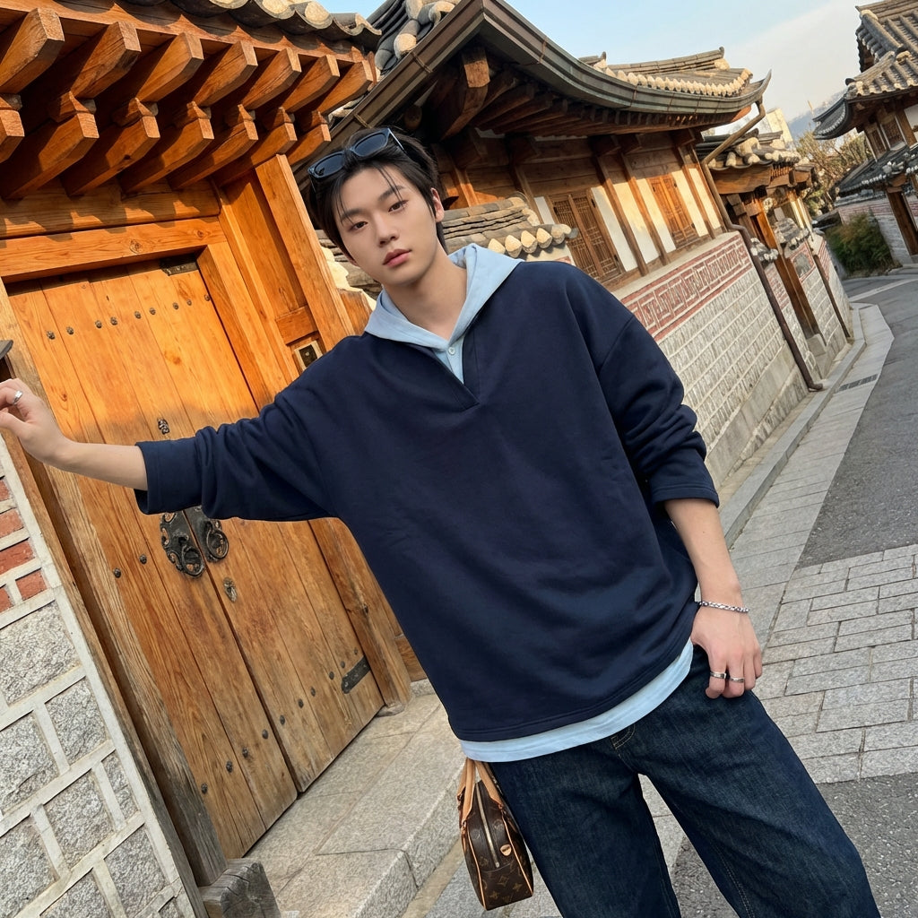 - Stil: Streetwear, Lässig, Koreanische Mode. Dieser Hoodie verkörpert die Essenz des urbanen Stils mit K-Fashion-Inspiration, perfekt für einen modernen und trendigen Look.