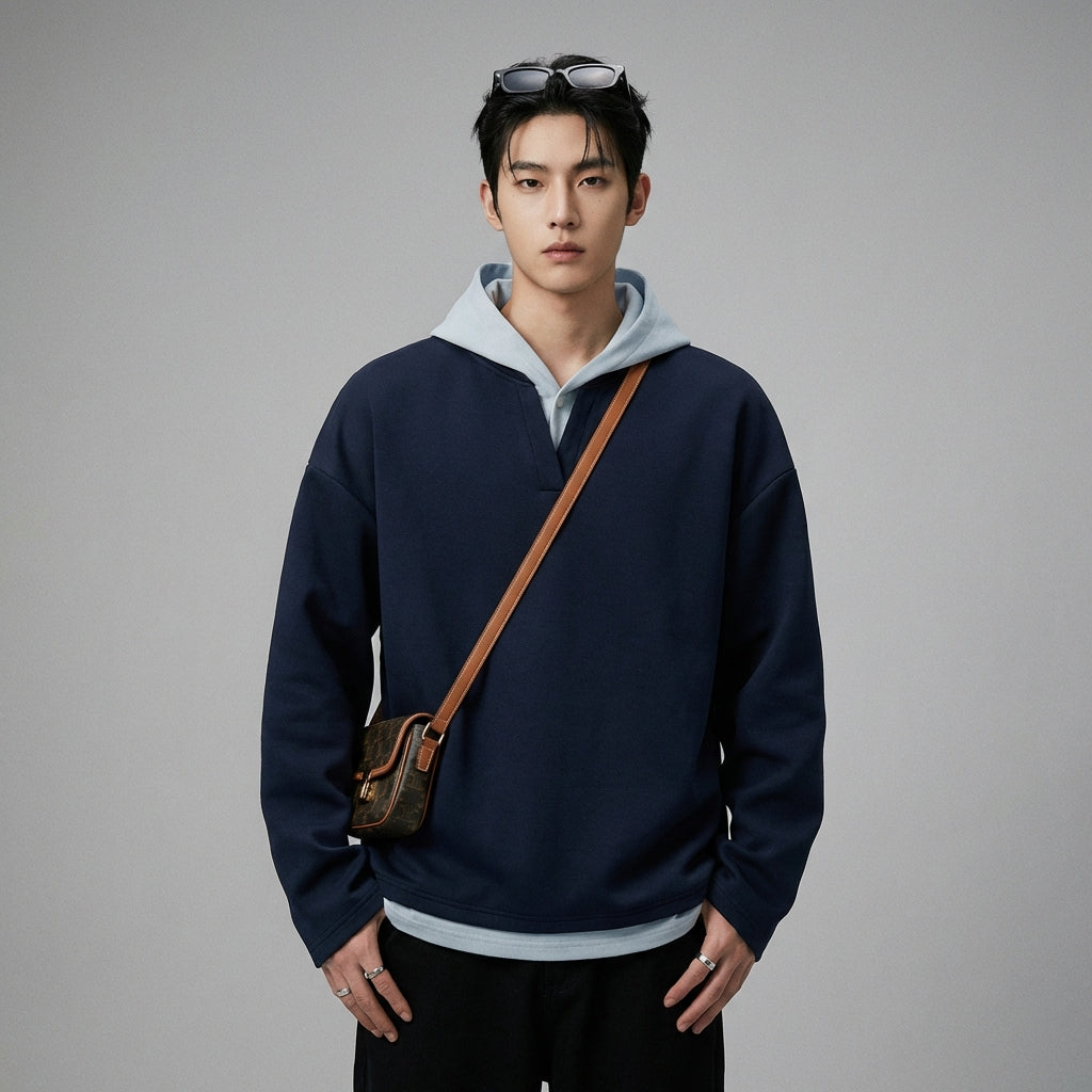 Kreieren Sie einen lässigen und stilvollen Look mit unserem zweifarbigen Hoodie, einem unverzichtbaren Teil für einen selbstbewussten Streetwear-Stil. Sein innovatives Design erweckt die Illusion eines doppelten Kleidungsstücks für einen Hauch von Originalität! ✨